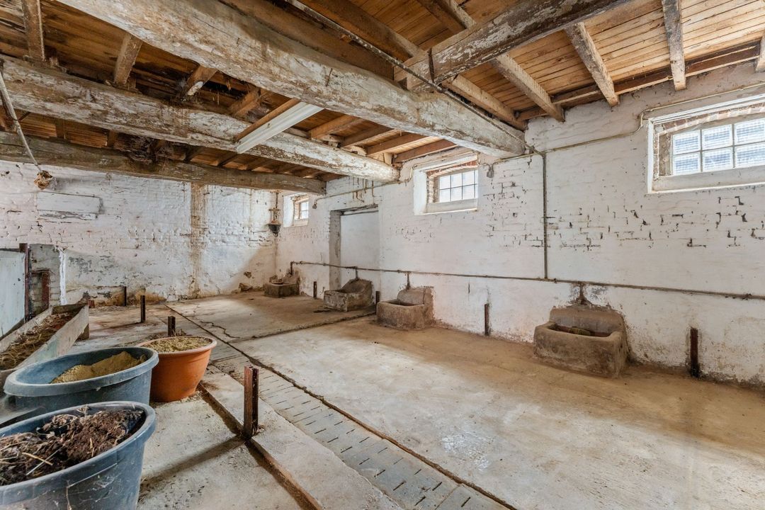 De overige vleugels van de hoeve omvatten bijkomende stallen met verdieping, waaronder de imposante schuur van 195 m² die toegang biedt tot de achtergelegen weides met overkapping. Deze bijgebouwen bieden tal van mogelijkheden om een authentieke, landelijke leefruimte te creëren of om paarden- en dierenliefhebbers alle ruimte te geven. Daarnaast bestaat de mogelijkheid om extra weidegrond bij aan te kopen.