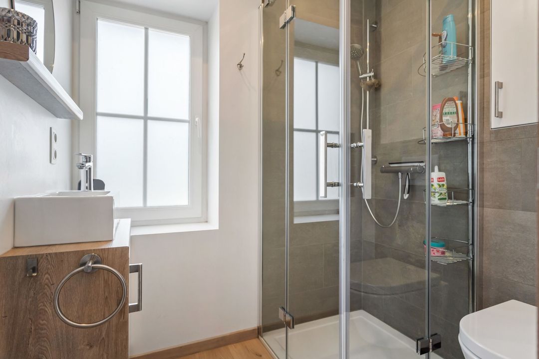 Op de eerste verdieping bevinden zich drie ruime slaapkamers, waarvan de grootste beschikt over een ingebouwde dressing. De nachthal is uitgerust met airco en de tweede badkamer is voorzien van een douche, lavabo en extra toilet.