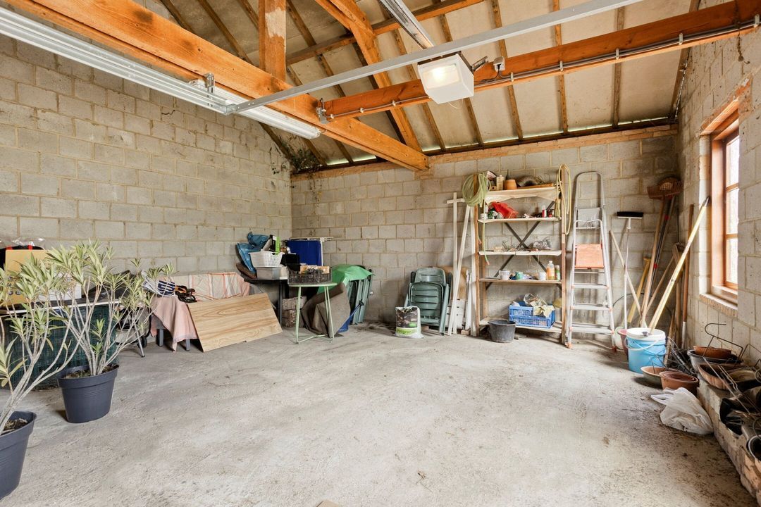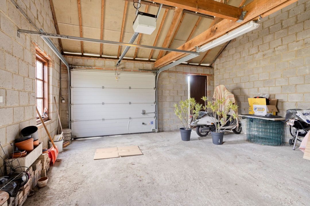 Aan de achterzijde van de woning bevindt zich een royale vrijstaande garage van circa 34 m². De garage is bereikbaar via een elektrisch bedienbare kantelpoort en een toegangsdeur, en voorzien van elektra. Hier is voldoende ruimte voor het parkeren van een voertuig, het stallen van fietsen, of het opbergen van gereedschap en tuingereedschap. De oprit biedt daarnaast de mogelijkheid om meerdere voertuigen te parkeren, wat het geheel zeer praktisch maakt voor gezinnen of bezoekers.