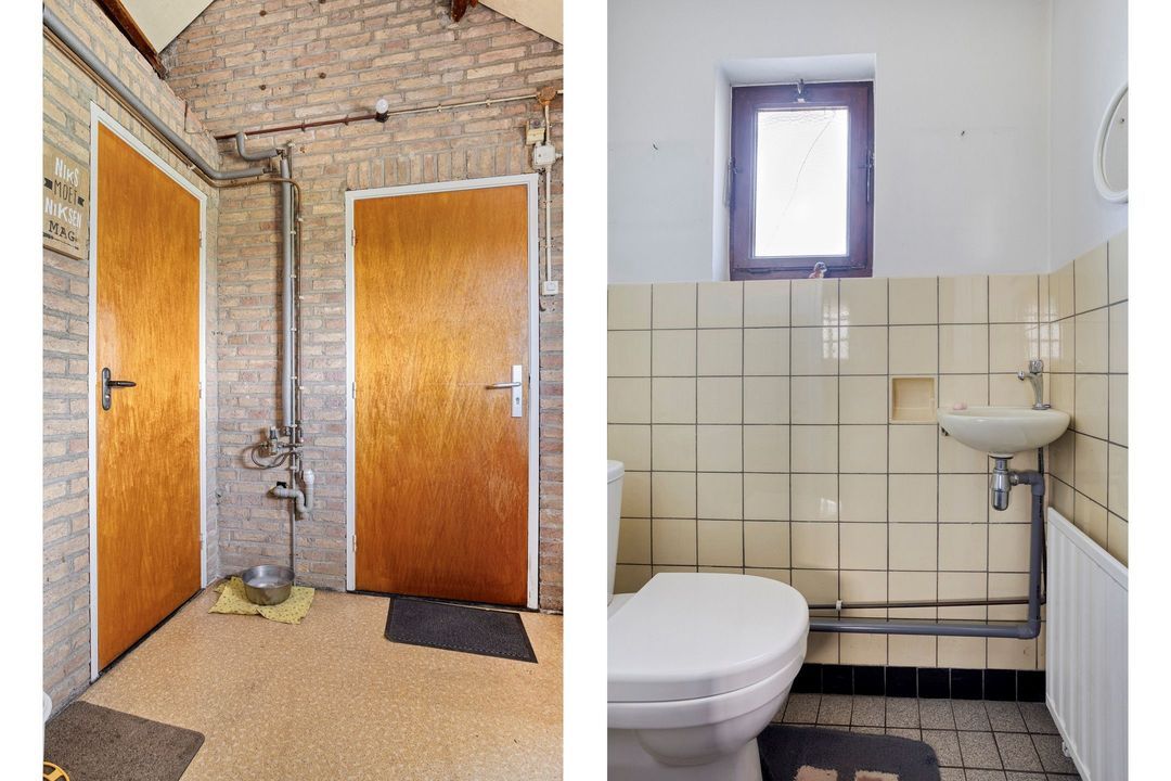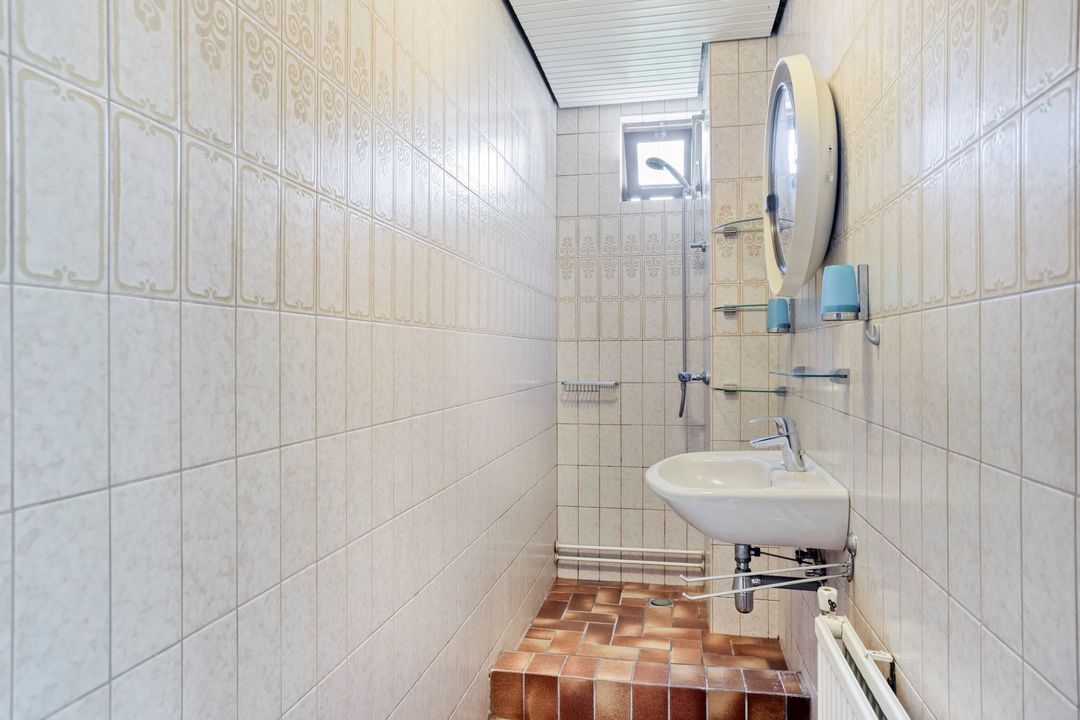 De bijkeuken (ca. 10 m²) is een praktische ruimte voor extra opslag. Hier bevindt zich de witgoedaansluiting en de cv-installatie (eigendom, Nefit), en tevens is hier een betegelde toiletruimte met staand closet en fonteintje. Vanuit de bijkeuken heeft u tevens toegang tot de tuin, waardoor deze ruimte een functioneel en verbindend hart vormt tussen binnen en buiten.
