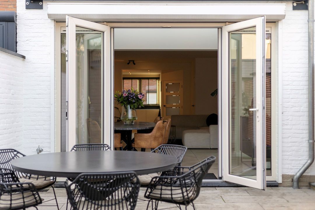 De woning beschikt over een fraaie, sfeervolle en onderhoudsvriendelijke achtertuin, welke bereikbaar is via de deuren in de leefruimte en via een achterom. De tuin is volledig omheind en aangelegd met een ruim terras en diverse plantenborders. Direct grenzend aan de leefruimte bevindt zich een elektrisch uitschuifbaar zonnescherm, waardoor u hier vrijwel het gehele jaar door comfortabel kunt zitten.