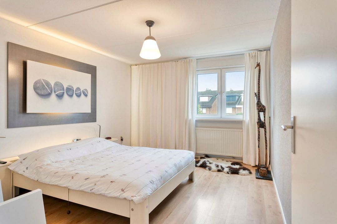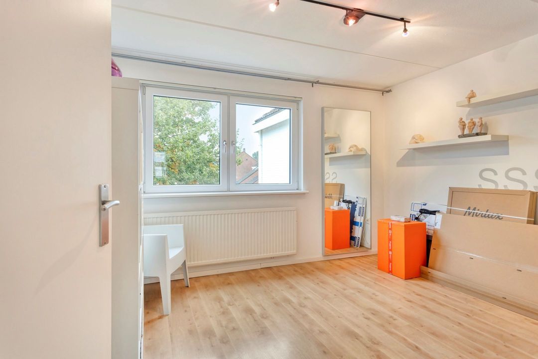 Via de trap in de entree bereikt u de overloop van de eerste verdieping. Hier bevinden zich drie ruime slaapkamers, de badkamer en een handige kastruimte. De overloop biedt tevens toegang tot de tweede verdieping via een vaste trap. Deze verdieping is afgewerkt met een mooie laminaatvloer.