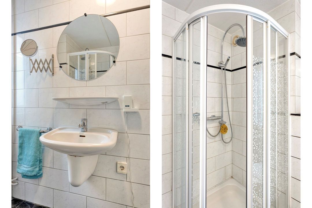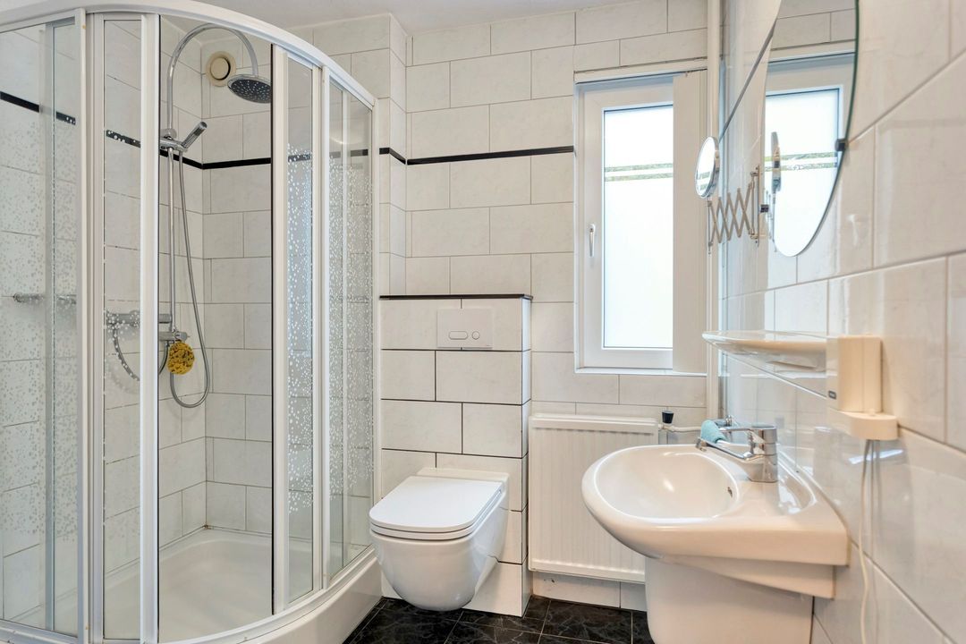 • Badkamer: ca. 4 m², volledig betegeld en voorzien van douchecabine, wastafel en hangcloset.
