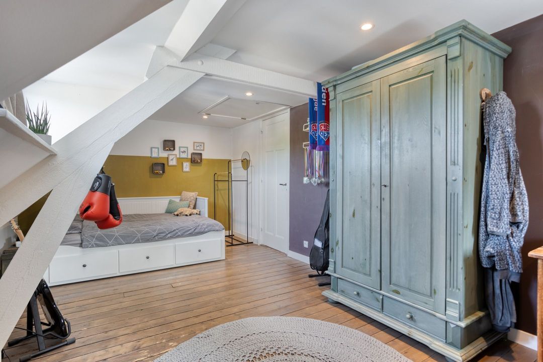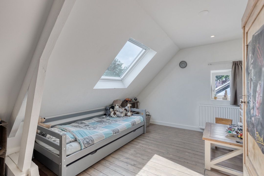 • Slaapkamer 3: Deze ruime slaapkamer is ca. 16,5 m² groot en voorzien van een mooie lichtinval door het dakkapel. Tevens bevindt zich hier een vlizotrap naar de vliering. Deze is enkel als (ruimere) opslagruimte beschikbaar door de lagere nokhoogte.