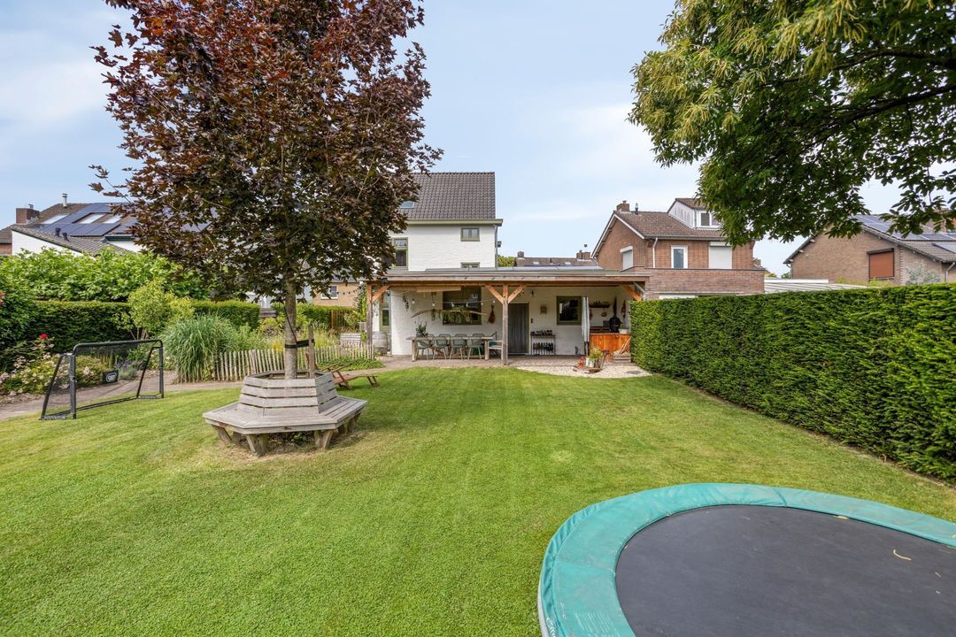 De rondom aangelegde tuin is een groene oase van rust en privacy, met volop ruimte om te ontspannen, te spelen of te genieten van het buitenleven. Dit maakt de woning ideaal voor gezinnen, tuinliefhebbers of iedereen die het comfort van buitenruimte waardeert.