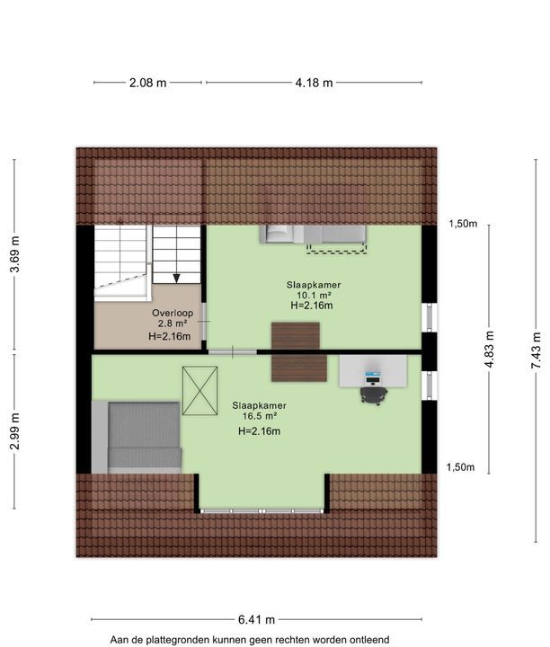 • Slaapkamer 2: Deze fijne slaapkamer is ca. 16 m² groot.