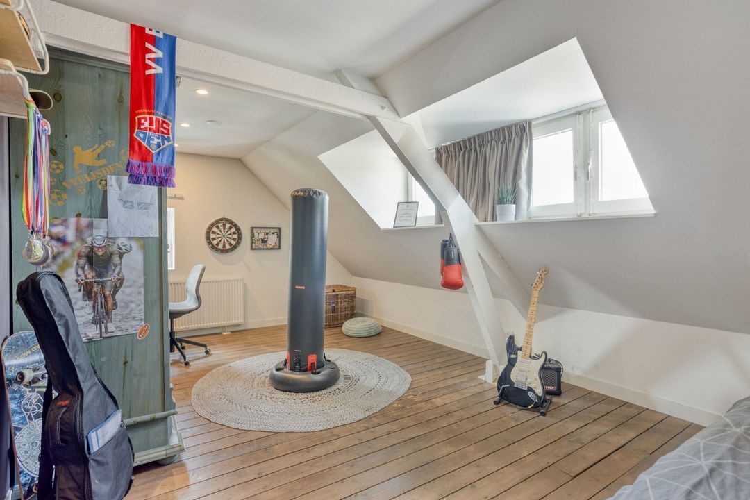 • Slaapkamer 3: Deze ruime slaapkamer is ca. 16,5 m² groot en voorzien van een mooie lichtinval door het dakkapel. Tevens bevindt zich hier een vlizotrap naar de vliering. Deze is enkel als (ruimere) opslagruimte beschikbaar door de lagere nokhoogte.