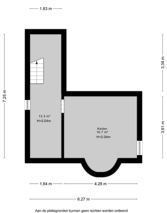 De woning is voorzien van een handige kelder, bestaande uit twee ruimtes van ca. 13 en 17 m² groot. De kelder is te bereiken via een trap in de entree en ideaal voor het opbergen van voorraden of materialen.