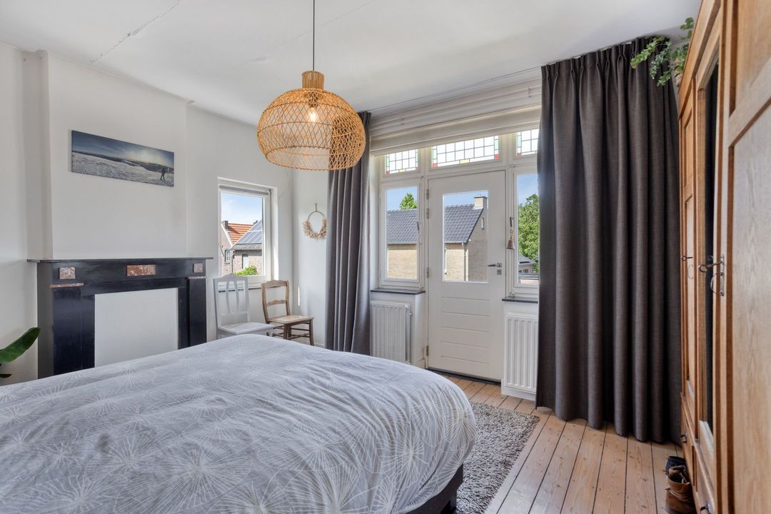 • Slaapkamer 1: Deze slaapkamer is ca. 16 m² groot en beschikt over een schouw en een deur naar het balkon met uitzicht over de straat.