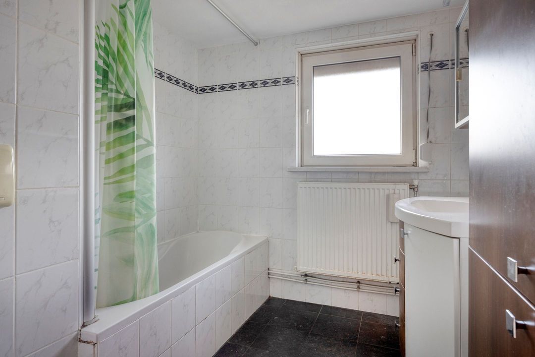 • Badkamer: De net verzorgde en betegelde, badkamer is ca. 5 m² groot en is voorzien van een ligbad met douche, een wastafelmeubel en een hangcloset.