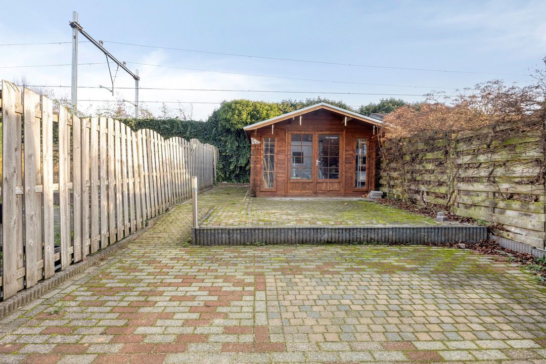 De woning beschikt over een volledig omsloten, onderhoudsvriendelijke en ruime achtertuin, toegankelijk via de bijkeuken. De tuin biedt volop mogelijkheden om naar eigen wens te worden ingericht. Daarnaast is er een praktische berging van circa 13 m² aanwezig, ideaal voor het opbergen van tuingereedschap, fietsen of andere materialen.
