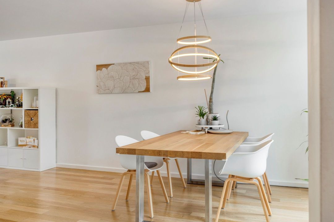 De woonkamer vormt een uitnodigende leefruimte van circa 45 m², met een mooie houten parketvloer die zorgt voor een warme en stijlvolle uitstraling. Dankzij het grote raam aan de voorzijde en de royale glazen pui met openslaande deuren aan de tuinzijde geniet deze woonkamer van een prachtige lichtinval gedurende de hele dag en staat het hele jaar in contact met de nette voor- en achtertuin. Een heerlijke plek voor zowel dagelijkse momenten als gezellige avonden.