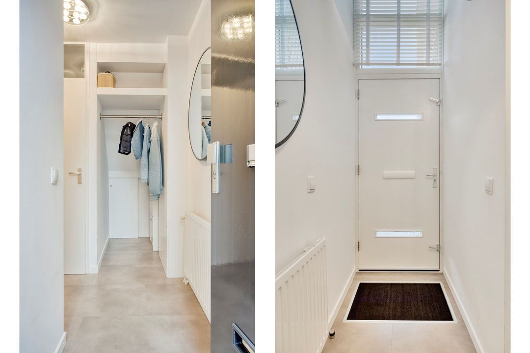 U wordt verwelkomd in een lichte en ruime entree, afgewerkt met een fraaie PVC tegelvloer. Vanuit de hal heeft u toegang tot de meterkast, de garderobe, de geheel betegelde toiletruimte met wandcloset en fonteintje, en uiteraard tot de woonkamer met semi-open keuken.