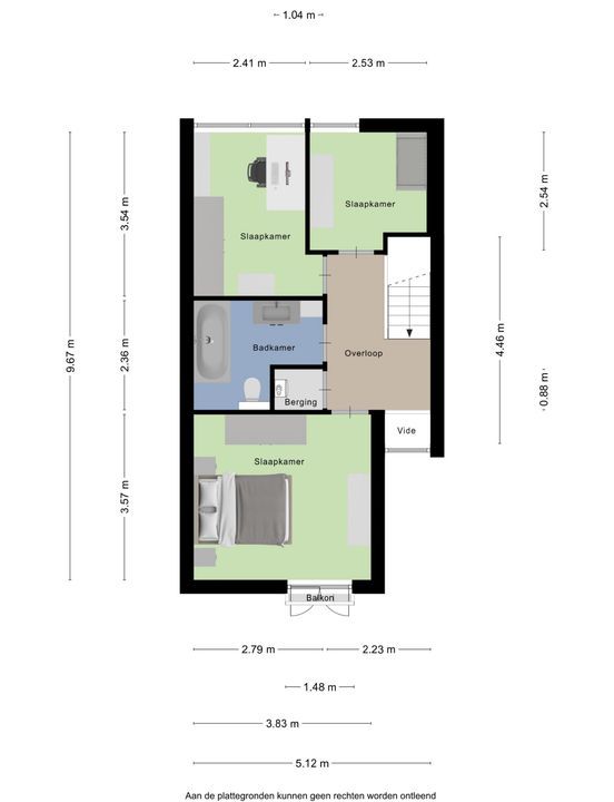 • Slaapkamer 3: Deze slaapkamer is ca. 6 m² groot en ideaal als hobbykamer of babykamer.
