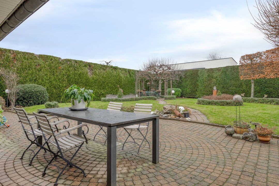 De fraai aangelegde en volledig omheinde tuin rondom de woning vormt een heerlijke, groene oase van rust en privacy. Dankzij de zijingang en de directe toegang vanuit de woonkamer, bijkeuken en garage is de tuin optimaal geïntegreerd in het wooncomfort. De tuin is verzorgd aangelegd met een ruim terras, een strak gazon en volwassen beplanting die zorgt voor een prettige, groene uitstraling.