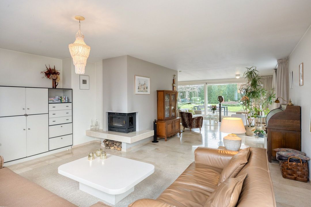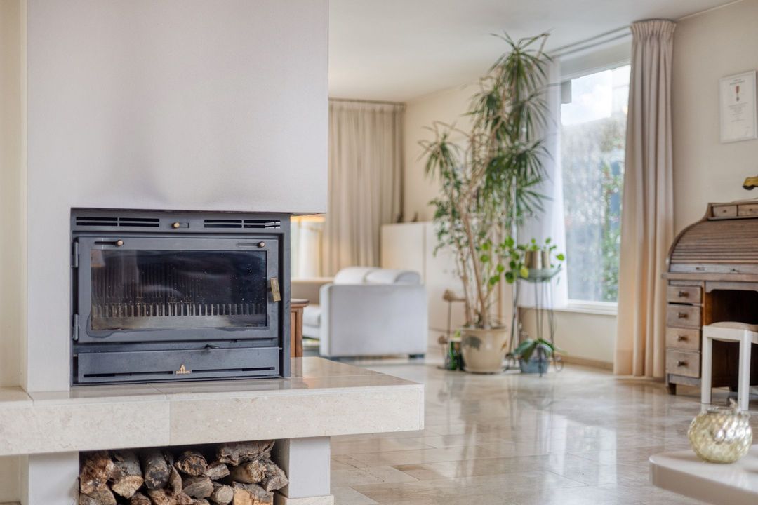 De woonkamer met semi-open keuken vormt het hart van de woning en heeft een indrukwekkende totale oppervlakte van circa 78 m² (!). Grote raampartijen en een brede schuifpui zorgen voor een overvloed aan daglicht en een prachtige verbinding met de tuin. De tegelvloer loopt vanuit de hal naadloos door in de woonkamer, wat zorgt voor een ruimtelijk en harmonieus geheel. De houtkachel vormt een sfeervol middelpunt en biedt naast warmte ook extra karakter aan de ruimte. De schuifpui strekt zich uit over vrijwel de volledige breedte van de achtergevel en nodigt uit om binnen en buiten moeiteloos met elkaar te verbinden.