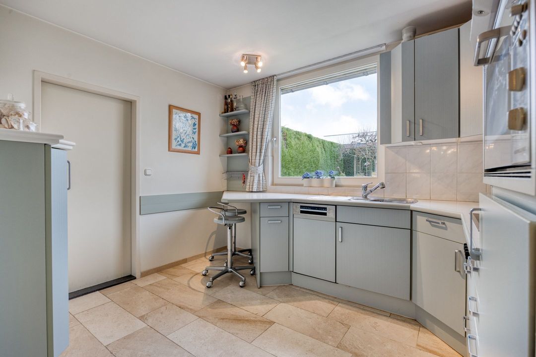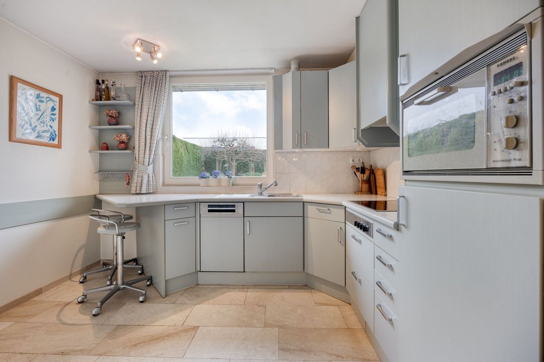 De semi-open keuken is uitgevoerd in een praktische L-opstelling en verkeert in goede staat van onderhoud. De keuken is voorzien van diverse inbouwapparatuur, waaronder een elektrische kookplaat, afzuigkap, vaatwasser en koelkast. Vanuit de keuken bereikt u via een deur de bijkeuken.