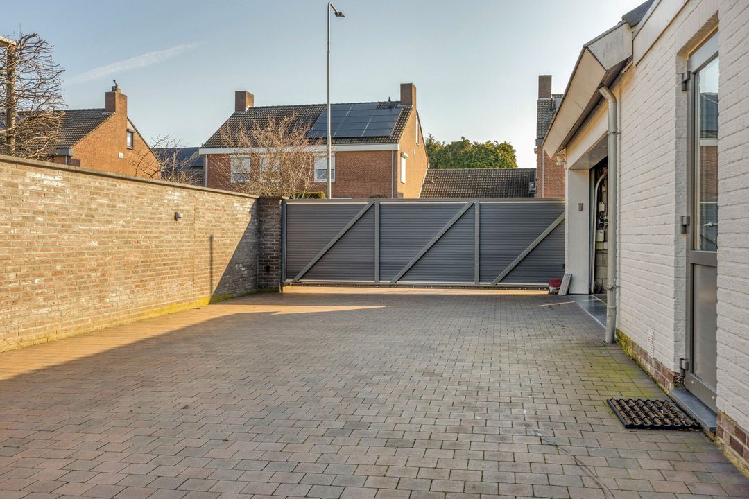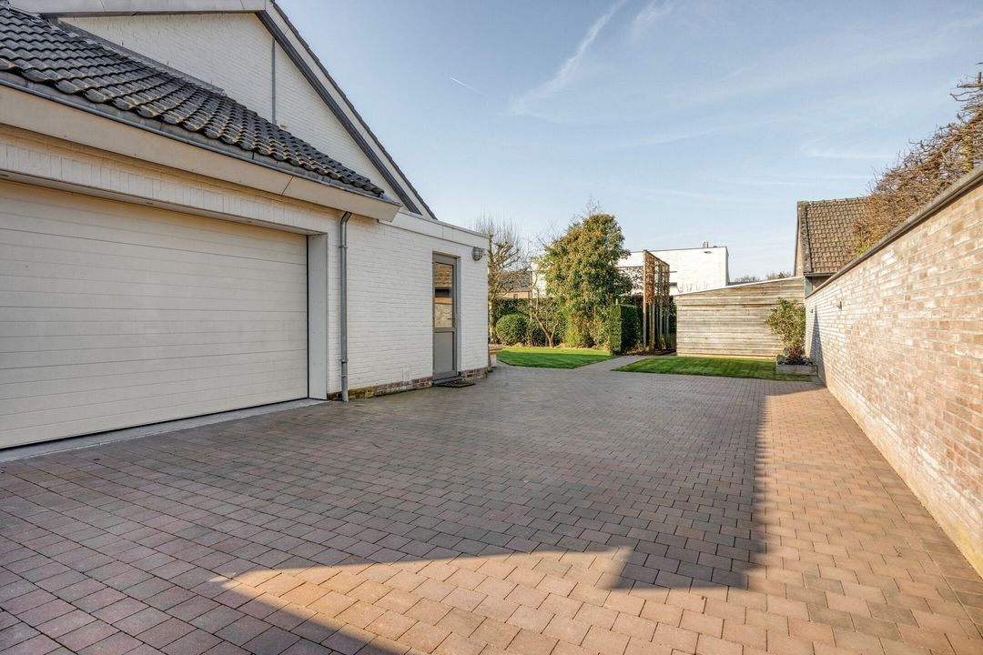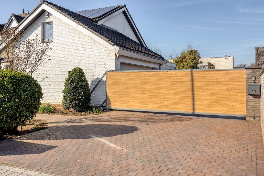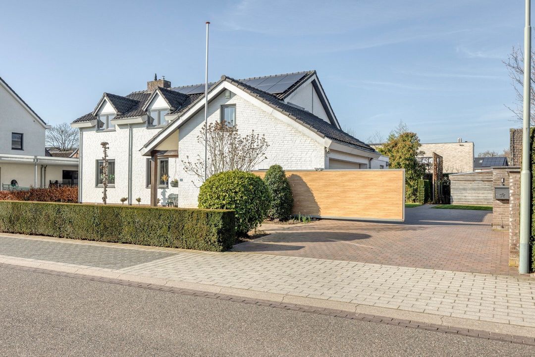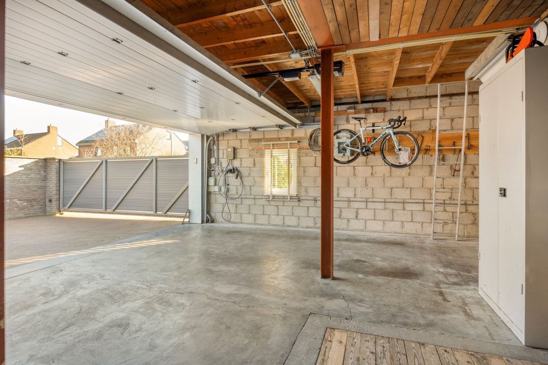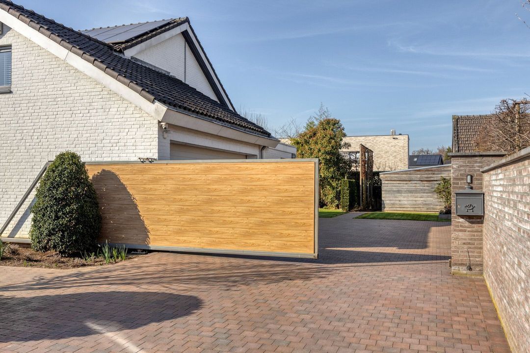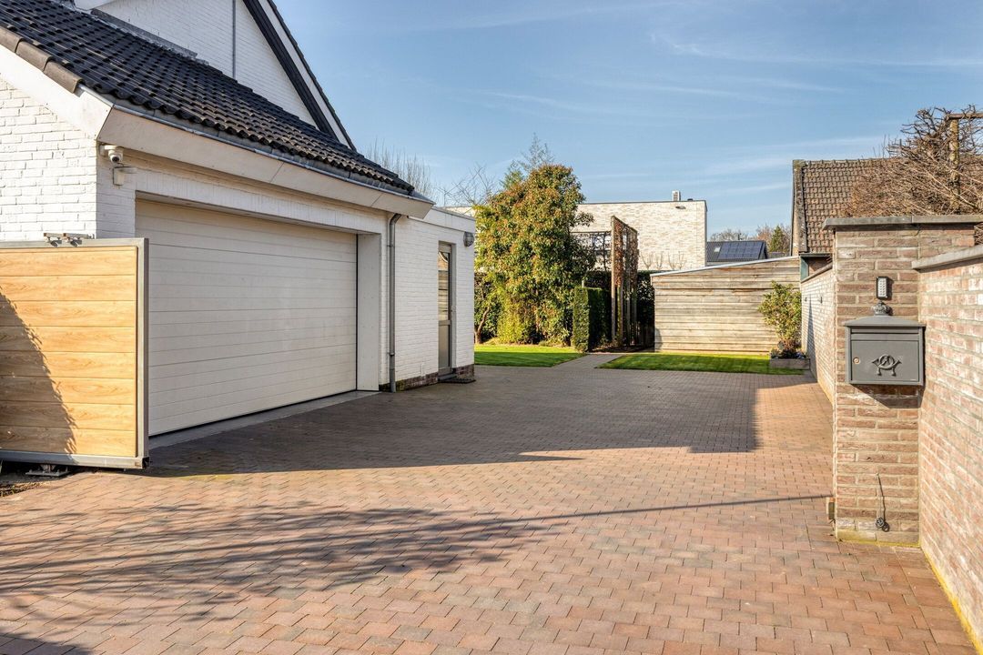 De royale, dubbele garage (ca. 40 m²) is zowel inpandig bereikbaar via de bijkeuken als via de elektrisch bedienbare kantelpoort aan de oprit. De garage is voorzien van elektra en een laadpunt voor een elektrische auto en biedt ruimte voor het parkeren van meerdere voertuigen, fietsen en/of een hobbyruimte. Bovendien is de garage voorzien van een praktische bergzolder, welke bereikbaar is middels een ladder. De ruime oprit biedt daarnaast parkeergelegenheid voor meerdere auto’s op eigen terrein.
