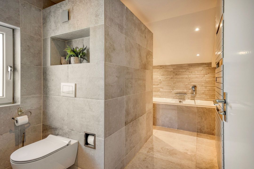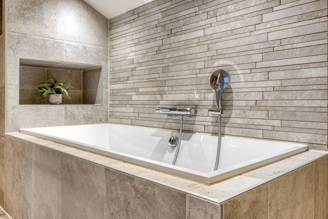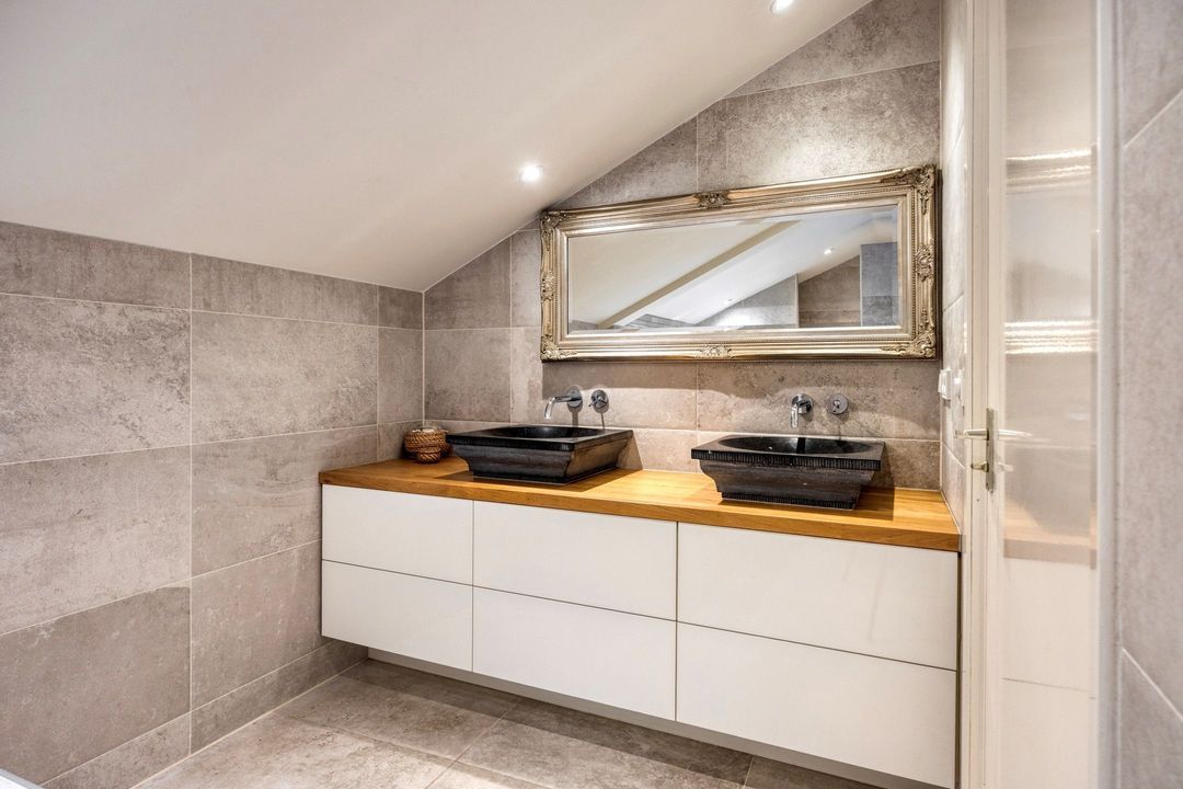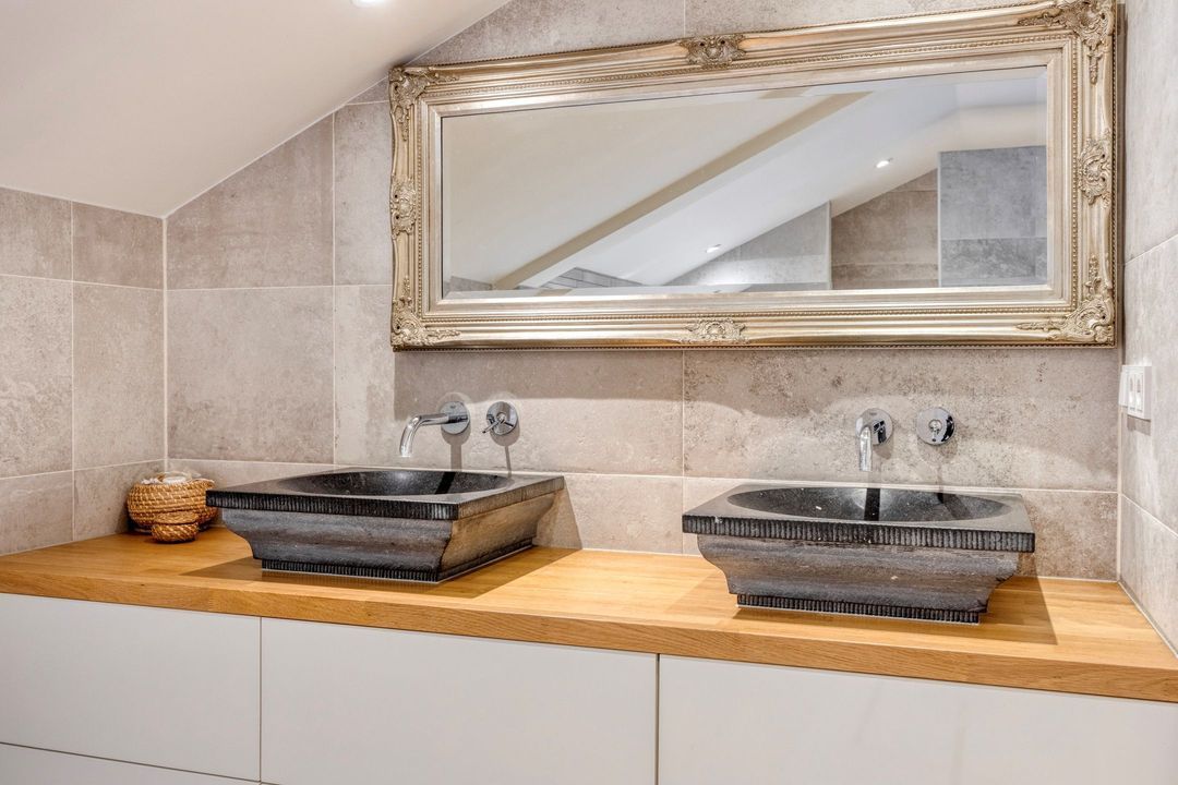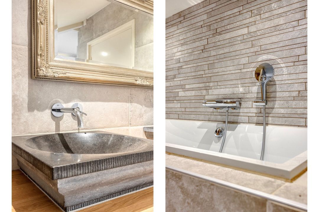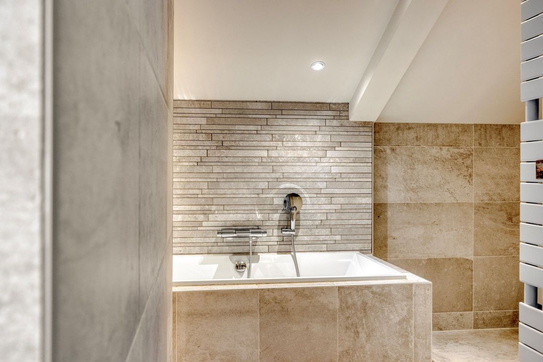 • Badkamer: De luxe en ruime badkamer is compleet uitgevoerd met een ligbad, een inloopdouche met regendouche en sunshower, een dubbel wastafelmeubel en een hangcloset. De afwerking is stijlvol en tijdloos, met elektrische vloerverwarming voor extra comfort.