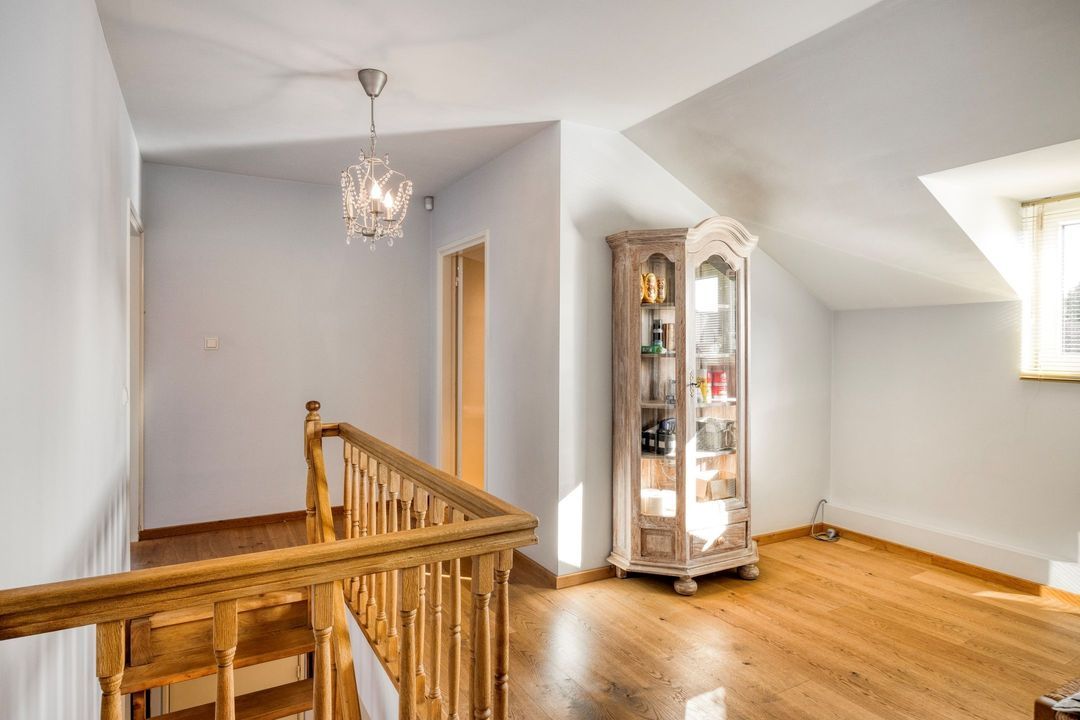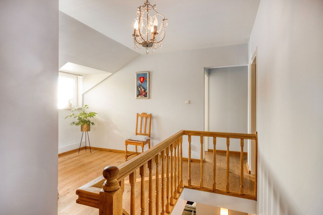 Via de trap in de entree bereikt u de eerste verdieping, waar een ruime en lichte overloop toegang geeft tot vier volwaardige slaapkamers en de badkamer. De gehele verdieping is voorzien van een eikenhouten vloer.