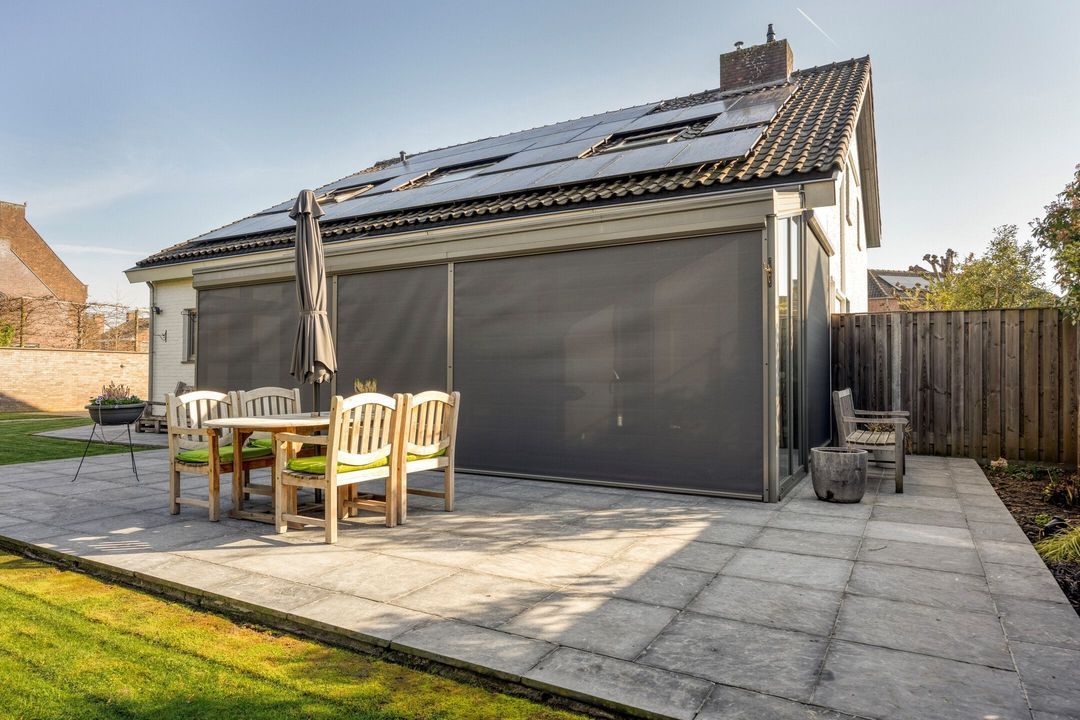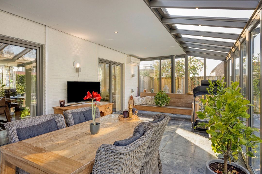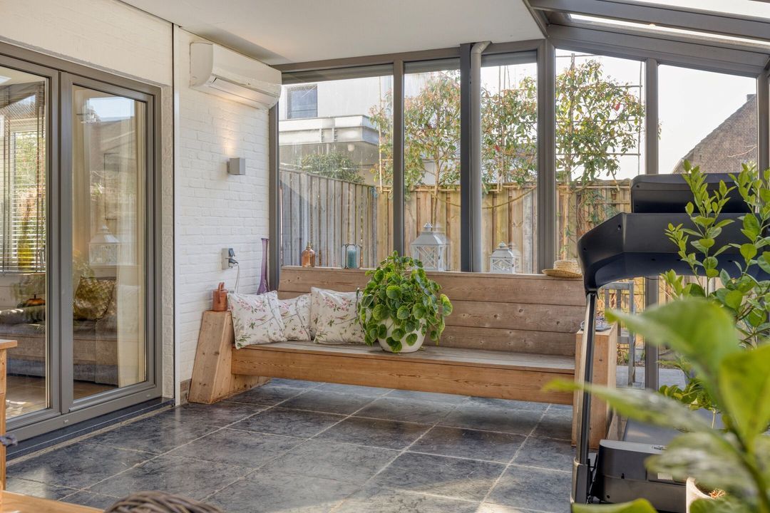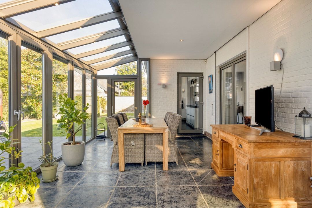Een absolute meerwaarde is de riante serre (ca. 29 m²), die dankzij de hoge glaspartijen baadt in het daglicht. Deze ruimte vormt een prachtige verlenging van de leefruimte en biedt het hele jaar door een comfortabele plek om te genieten van de tuin. De serre is volledig afsluitbaar door middel van screens en voorzien van airconditioning, waardoor privacy en comfort optimaal gewaarborgd zijn.
