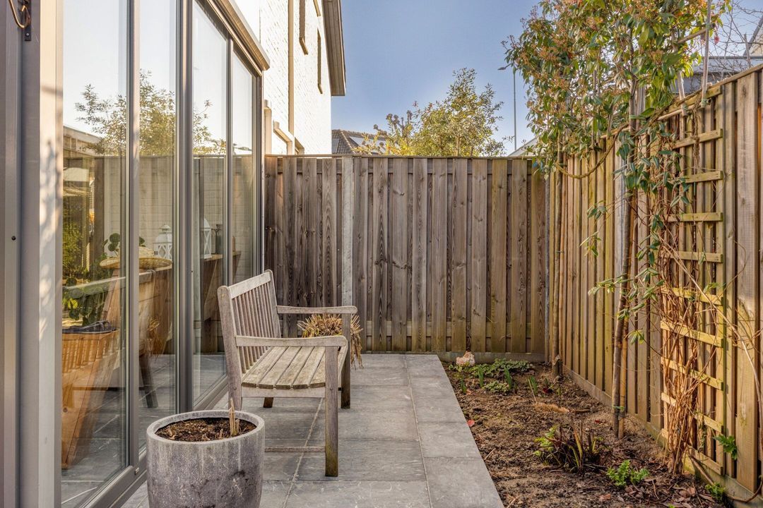De fraai aangelegde, rondom gelegen tuin biedt optimale privacy en is een waar verlengstuk van de woning. Met meerdere toegangen vanuit de woning, een ruim terras, een verzorgd gazon en diverse groenborders is dit een ideale plek om te ontspannen en te genieten van het buitenleven.