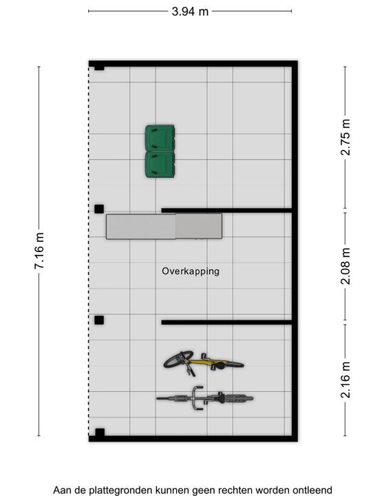 Achterin de tuin bevindt zich een praktische overkapping, geschikt voor opslag of het stallen van fietsen en tuinmaterialen. Het royale perceel van ca. 850 m² biedt bovendien volop mogelijkheden voor verdere invulling, zoals extra terrassen of een moestuin.