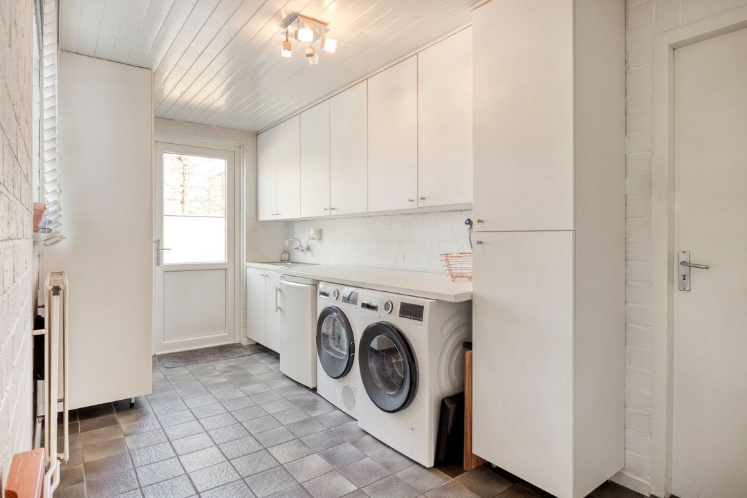 De bijkeuken (ca. 11 m²) biedt volop bergruimte, aansluitingen voor witgoed en toegang tot de tuin, de garage en het souterrain.