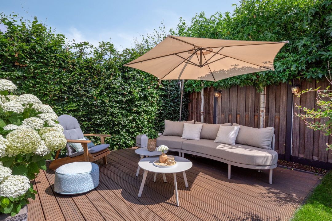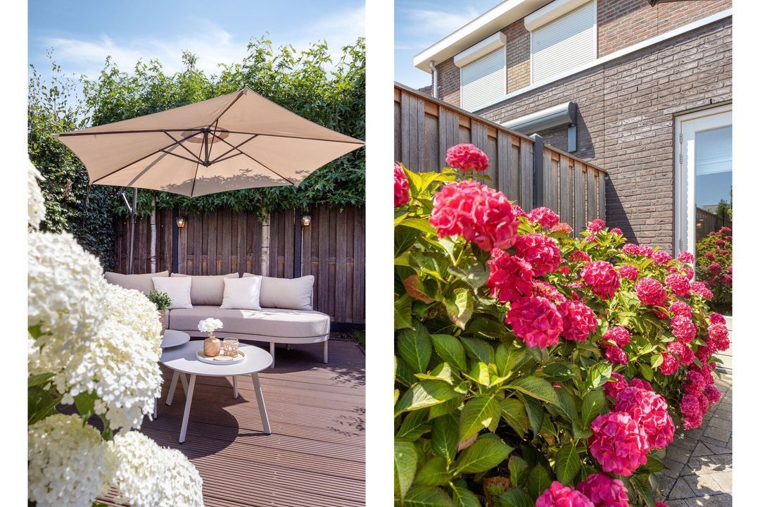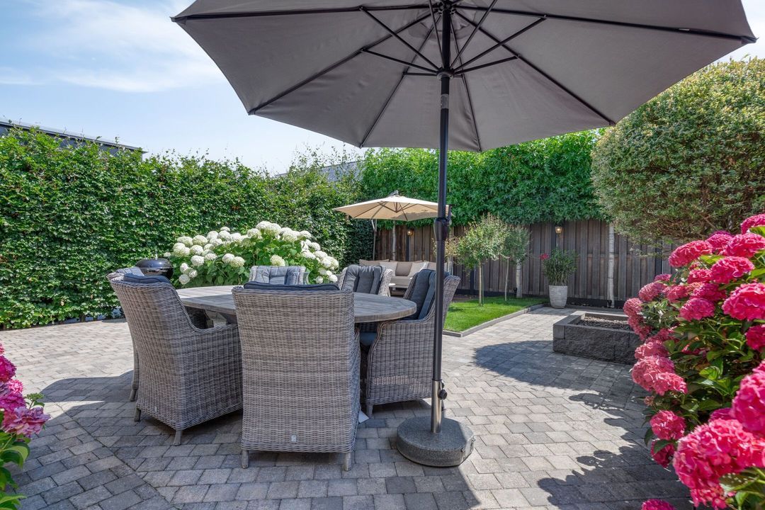 De fraai aangelegde achtertuin op het oosten is een echte eyecatcher. Met een combinatie van gazon, borders en meerdere terrassen biedt deze tuin een ideale mix van zon en schaduw. De beukenhaag, hardhouten schutting en leibomen zorgen voor volop privacy en een groene, rustige sfeer. Aan de voorzijde beschikt de woning over een royale oprit voorzien van een laadpunt voor elektrische auto’s.