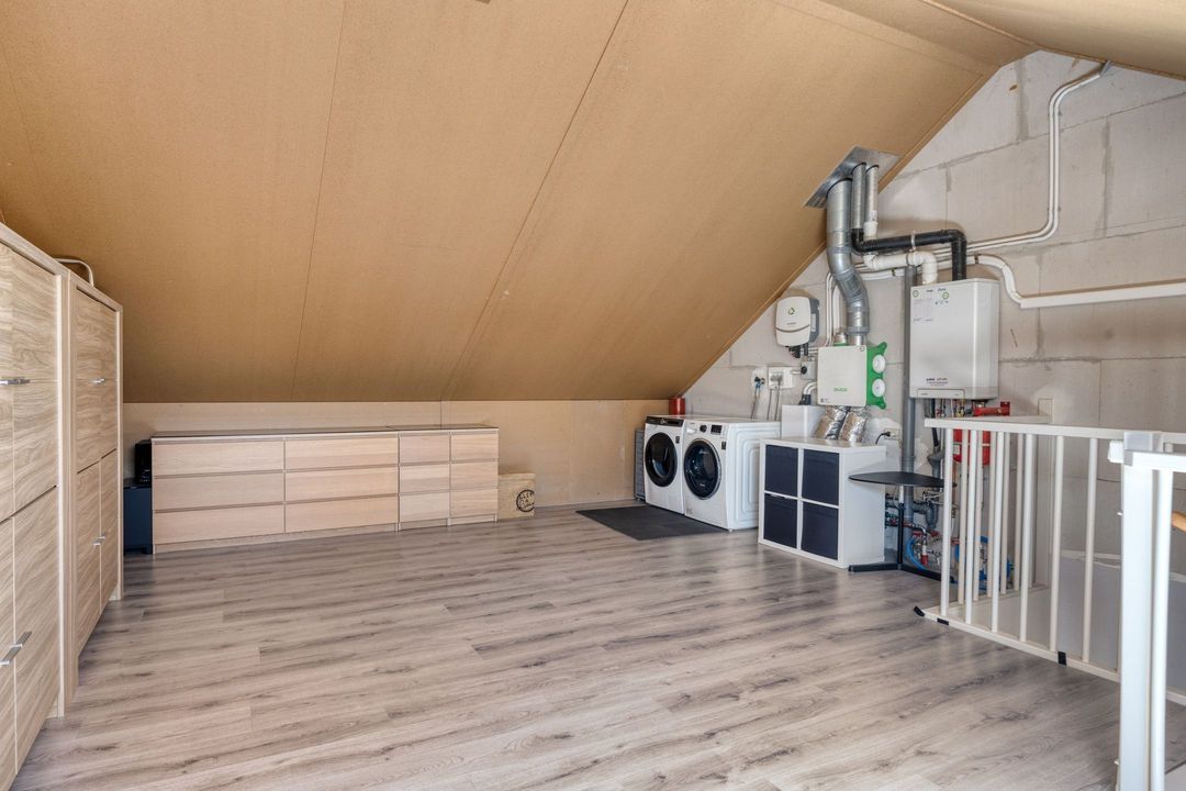 Op de tweede verdieping bevindt zich een ruime vierde slaapkamer (ca. 35 m²), momenteel in gebruik als was- en bergruimte. Dankzij de grootte en de indeling is het eenvoudig mogelijk om hier een of twee extra (slaap)kamers te creëren, zelfs nog met een vliering indien gewenst. Verder bevinden zich hier de witgoedaansluiting, de omvormer van de zonnepanelen en de cv-ketel (Intergas, Eigendom, 2017) en hybride warmtepomp (Remeha, Eigendom, 2021).
