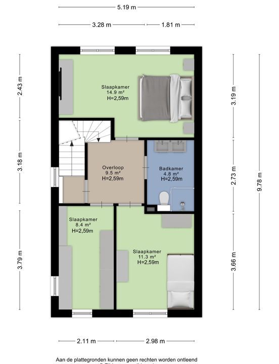• Alle vermelde afmetingen zijn indicatief en kunnen afwijken van de werkelijkheid.