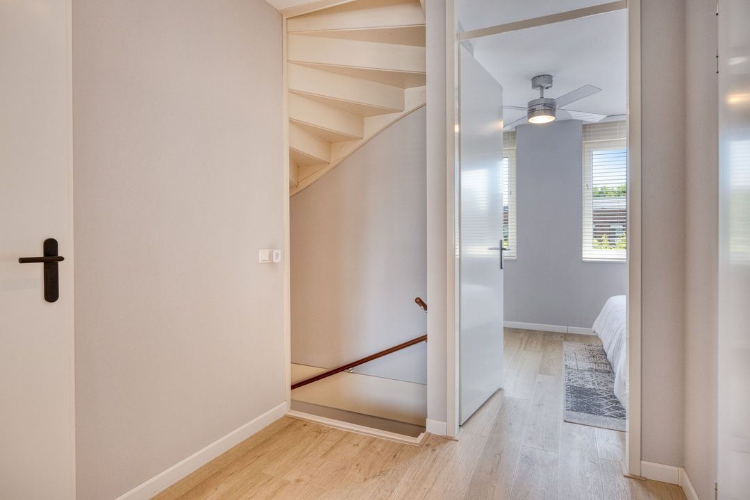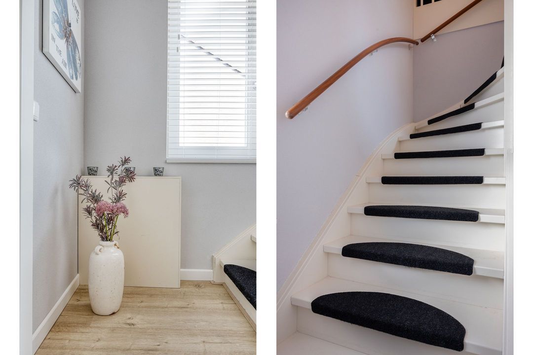 Via de stijlvolle trap in de entree is de ruime overloop (ca. 9,5 m²) op de eerste verdieping te bereiken. U treft hier 3 slaapkamers, 1 badkamer en een vaste trap naar de tweede verdieping aan. Ook deze verdieping is voorzien van een lichte laminaatvloer en vloerverwarming.