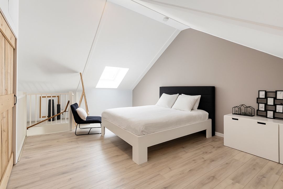 De vaste trap leidt naar een royale vierde slaapkamer met een vloeroppervlakte van ca. 31 m². Hier bevinden zich tevens een kastruimte met de witgoedaansluitingen en de cv-installatie (Intergas, 2016, eigendom). In het afschot van het dak is er volop extra bergruimte beschikbaar.