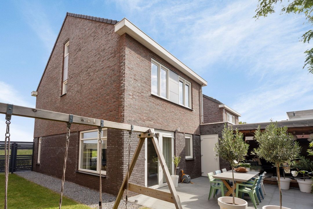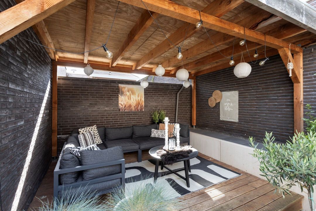 Daarnaast beschikt de woning over een ruime zijtuin, voorzien van een breed metalen hekwerk dat tevens als extra toegang dient. Onder de fraaie houten overkapping van ca. 15 m² is het perfect vertoeven en genieten van maaltijden met familie en vrienden. Ondanks dat het een relatief nieuwbouwhuis betreft, biedt deze woning opvallend veel privacy. Veel zoninval in de tuin!