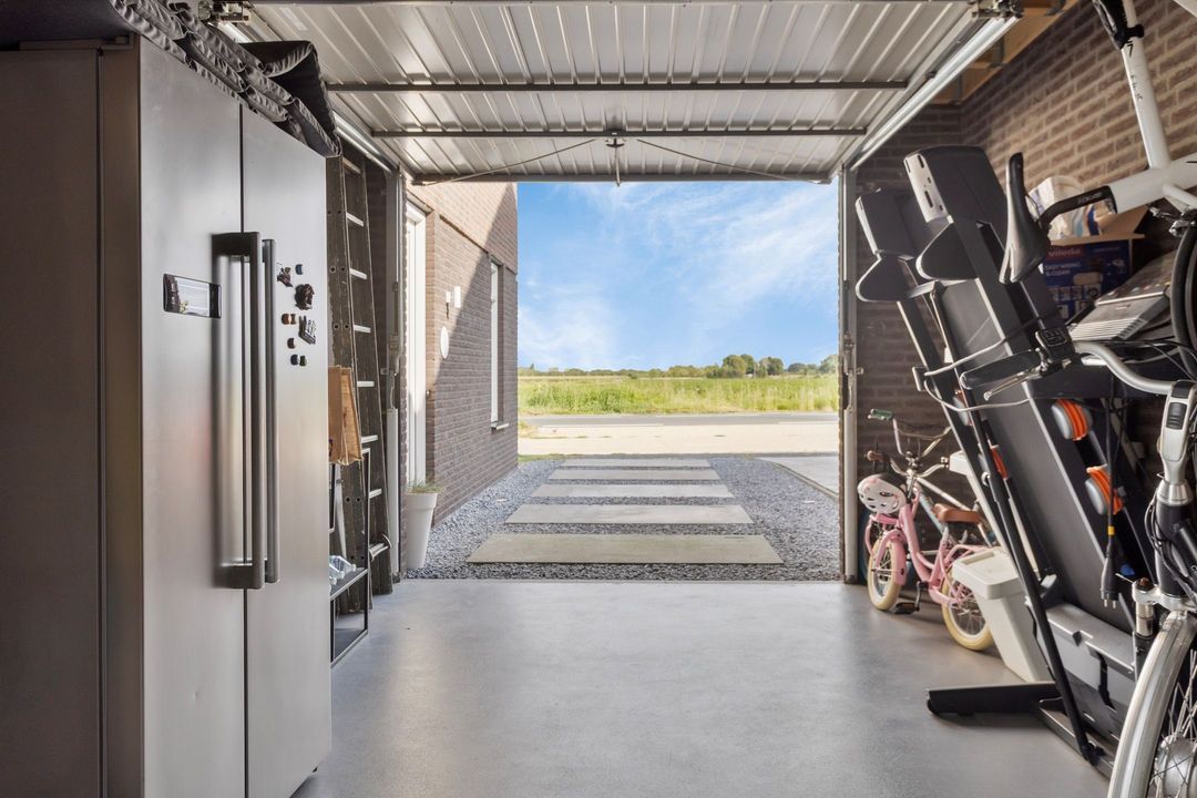 De woning is voorzien van een ruime garage van ca. 20 m² groot, welke bereikbaar is via de handmatig bedienbare kantelpoort op de oprit en via een deur in de tuin. De garage is groot genoeg voor het parkeren van een voertuig, het stallen van fietsen of extra opslag. Fijn is de oprit die plaats biedt voor 2 auto's.