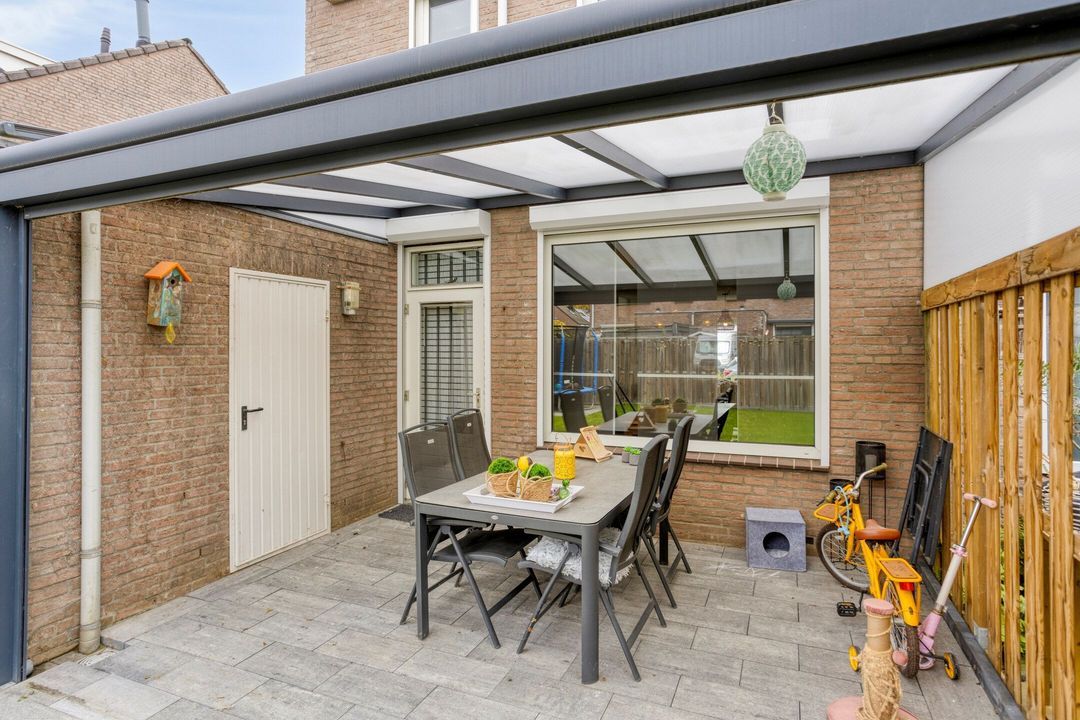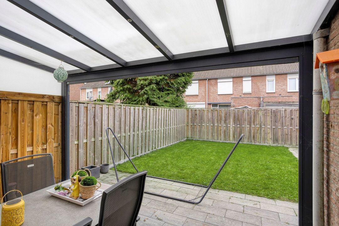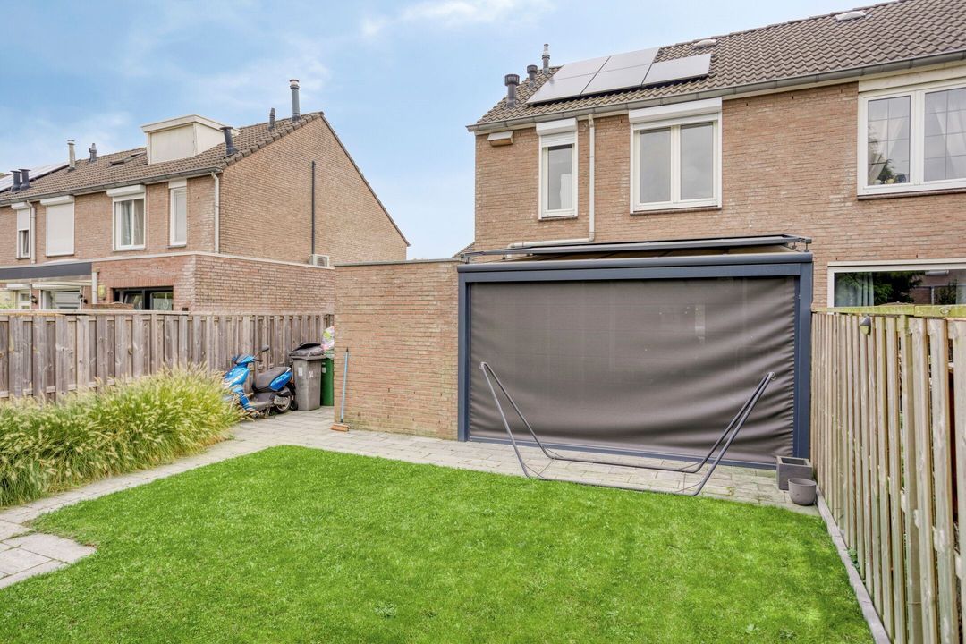 De onderhoudsvriendelijke tuin is volledig omheind en biedt optimale privacy. De indeling met een terras en gazon maakt de buitenruimte zowel praktisch als sfeervol. Via de deur in de keuken of via de zijingang is de tuin gemakkelijk bereikbaar. Aan de achterzijde bevindt zich een afsluitbare (dmv een screen) overkapping, grenzend aan de woonkamer en keuken, een heerlijke plek om in alle rust te zitten of gezellig te tafelen met vrienden en familie. Daarnaast beschikt de tuin over een berging aan de zijkant, ideaal voor het opbergen van tuinmeubilair, fietsen of gereedschap.