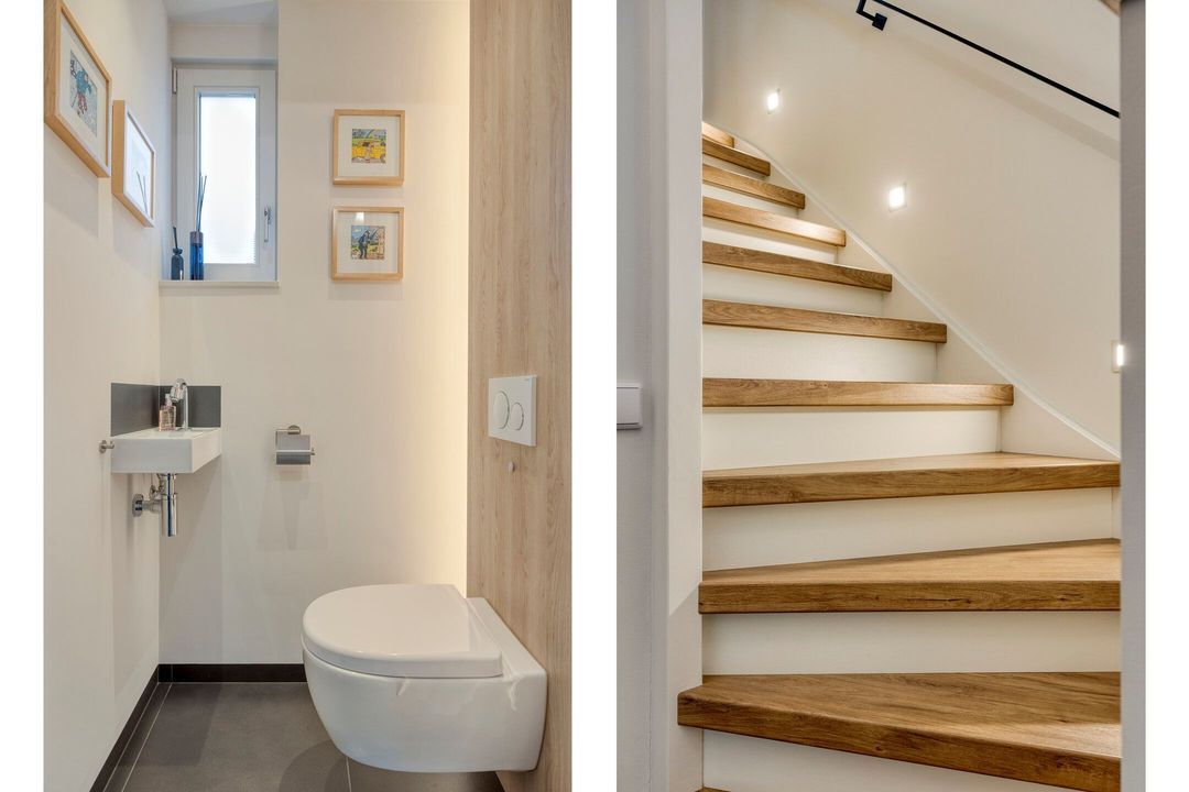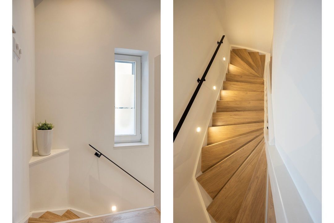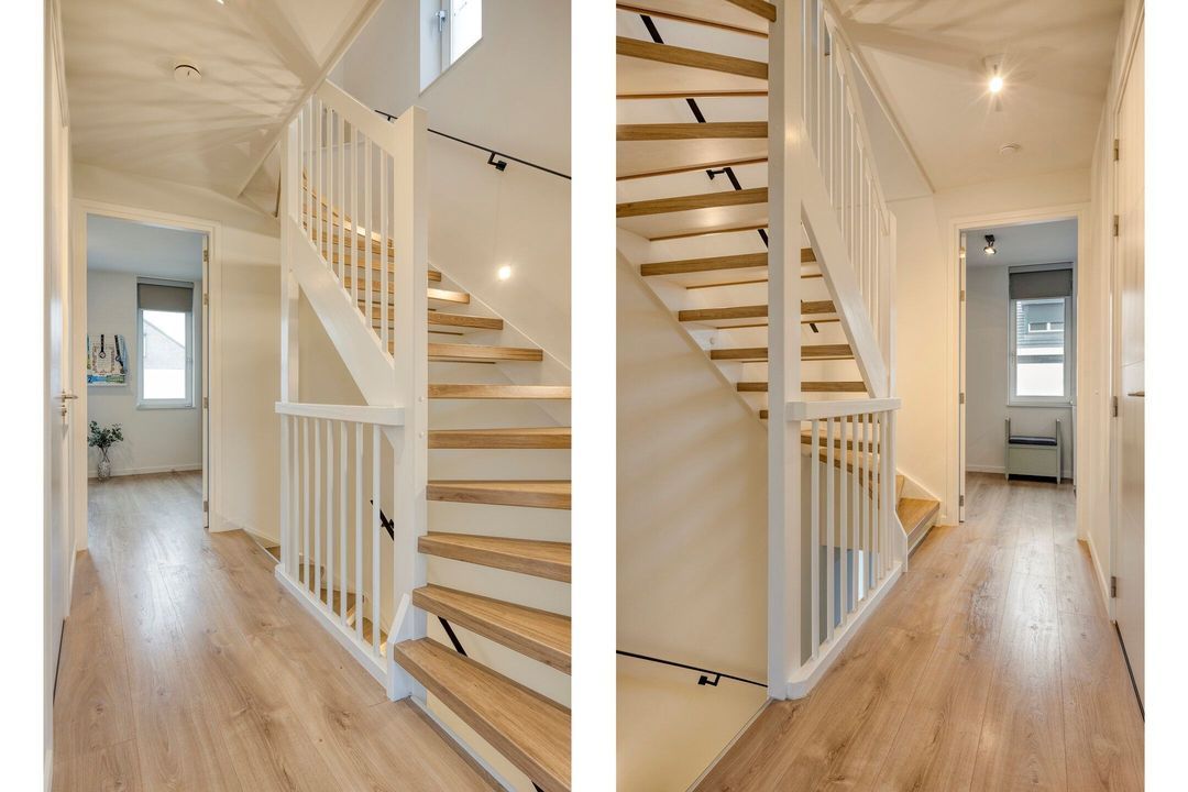 De eerste verdieping is bereikbaar via de vaste trap en biedt toegang tot twee ruime slaapkamers, de badkamer en een vaste trap naar de tweede verdieping. Ook deze verdieping is volledig voorzien van vloerverwarming en afgewerkt met een lichte, hoogwaardige laminaatvloer.
