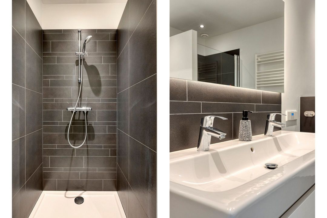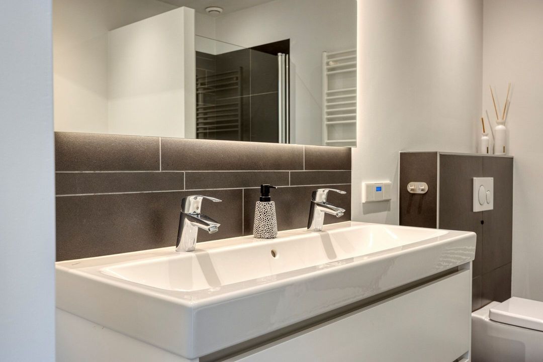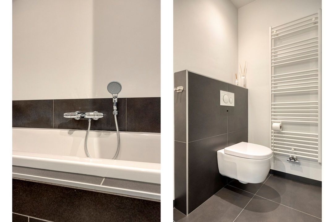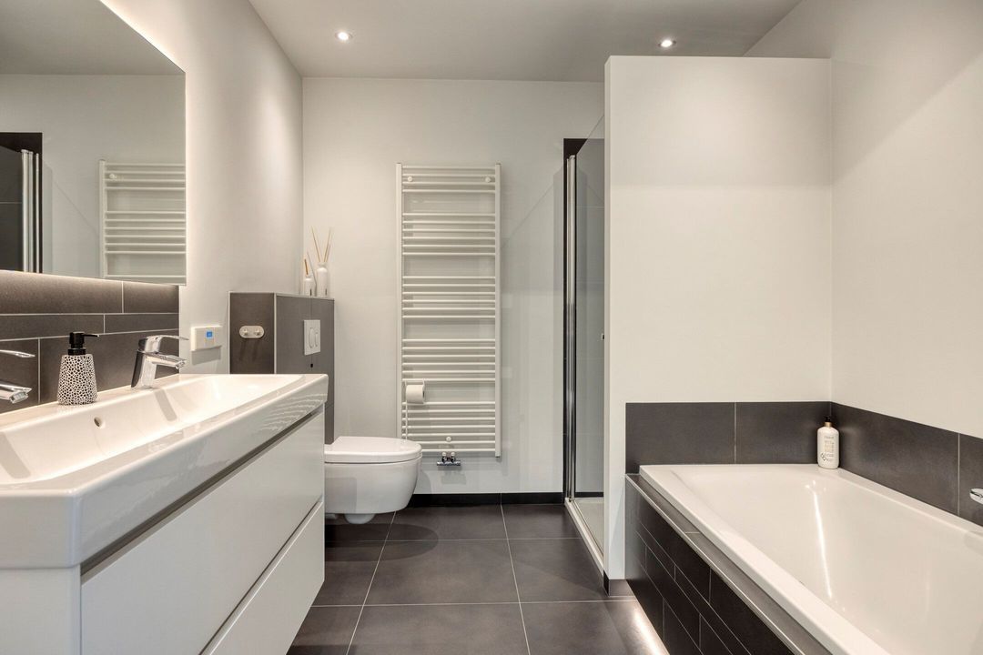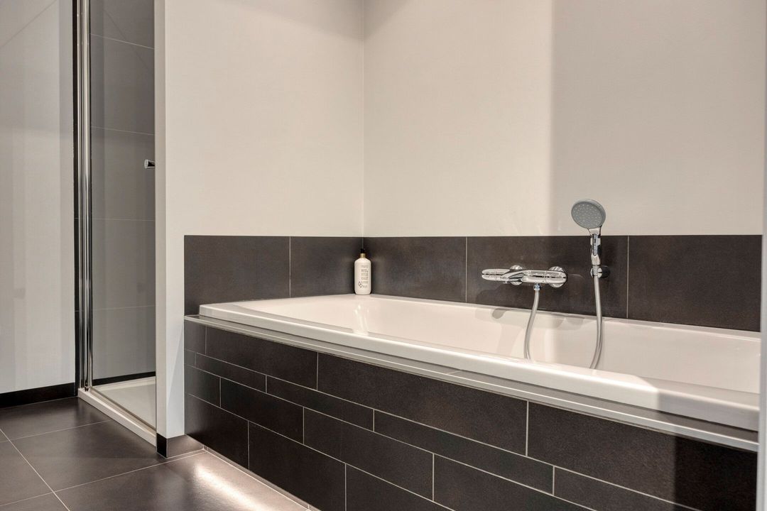 • Badkamer: De moderne, volledig betegelde badkamer (ca. 7 m²) is compleet uitgevoerd met een ligbad, een douchecabine, een dubbele wastafel en een hangcloset. De afwerking is stijlvol en tijdloos.