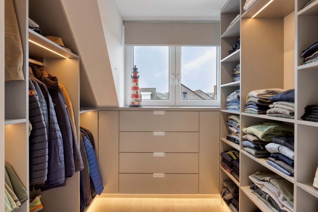 • Berging 1: Deze ruimte is ca. 5 m² groot en momenteel ingericht als inloopkast met interieurbouw, maatwerk kasten en eveneens voorzien van een dakkapel.