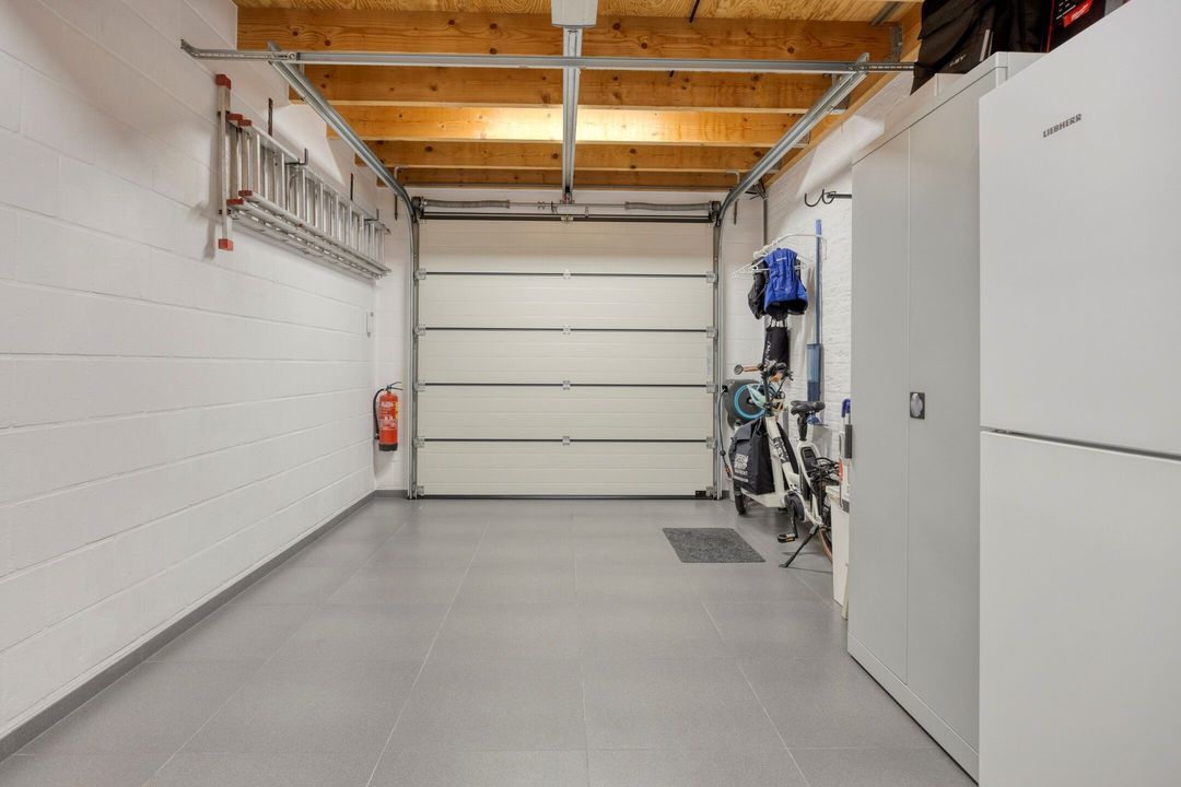 De geïsoleerde garage (ca. 23 m²) is bereikbaar via de oprit en vanuit de serre/tuinkamer. De garage is voorzien van een elektrisch bedienbare sectionaalpoort en afgewerkt met een tegelvloer. Daarnaast is deze uitgerust met een maatwerk keukenblok inclusief werkblad en spoelbak, wat de ruimte multifunctioneel maakt. Met aanwezige elektra- en wateraansluitingen is deze garage uitermate geschikt voor opslag, hobbyruimte of het plaatsen van extra witgoed of koel-/vriesapparatuur. Er is ruimte voor het parkeren van één auto.