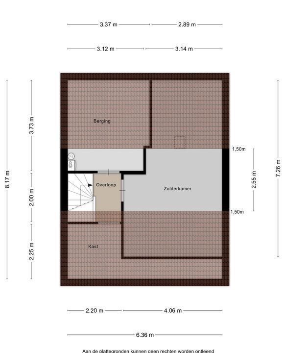 • Kastruimte: Naast de trap bevindt zich een muurkast.