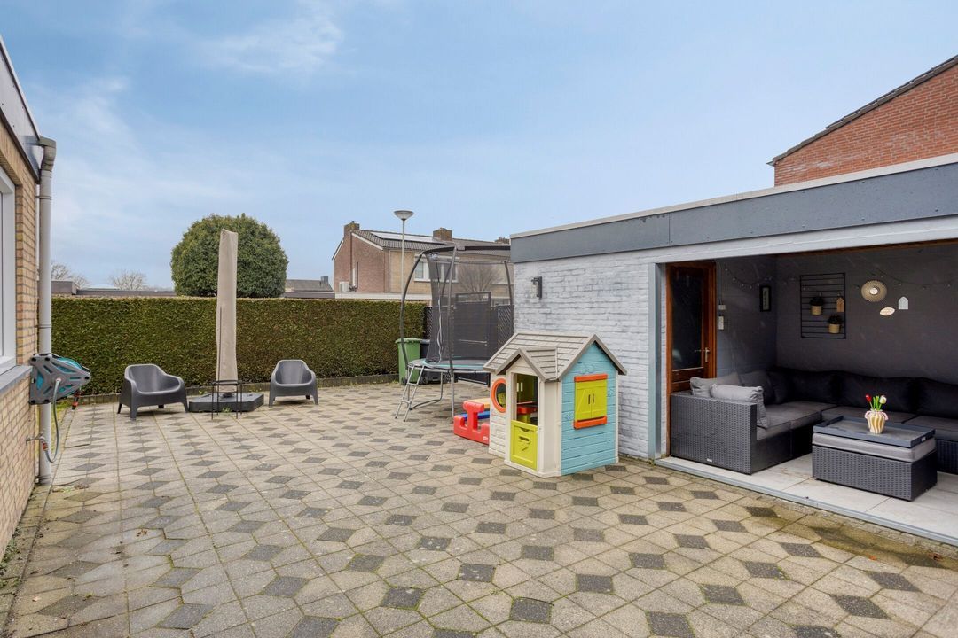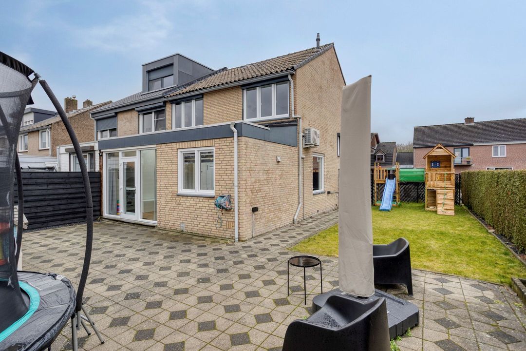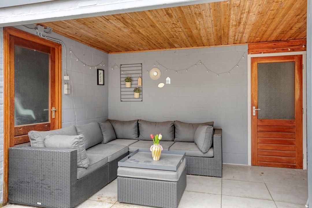 De woning is voorzien van een omsloten en fraai aangelegde tuin, bereikbaar via de woonkamer, de garage of de achteringang. De tuin beschikt over een gazon, borders met volwassen beplanting en een terras dat direct aansluit op de woonkamer en keuken. Een overkapping van ca. 10 m² biedt een beschutte plek om te zitten, ideaal voor ontbijt in de ochtendzon of een diner bij kaarslicht in de zomer. De royale opzet en verzorgde inrichting maken de tuin perfect voor gezinnen, tuinliefhebbers of iedereen die van het buitenleven wil genieten.