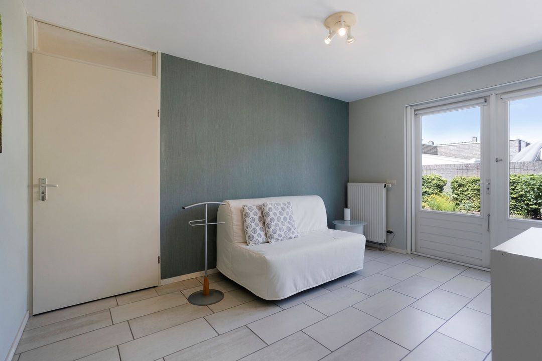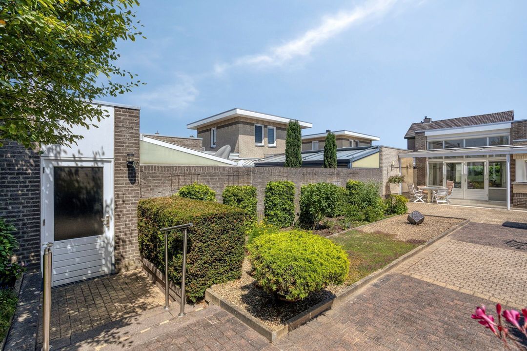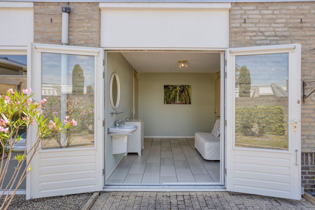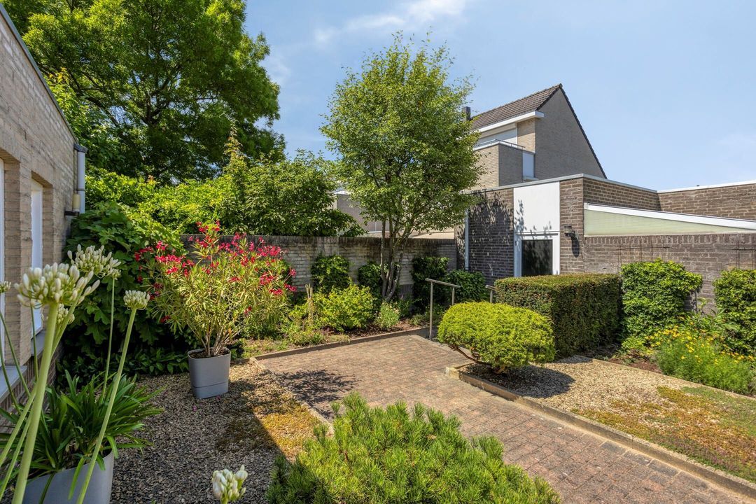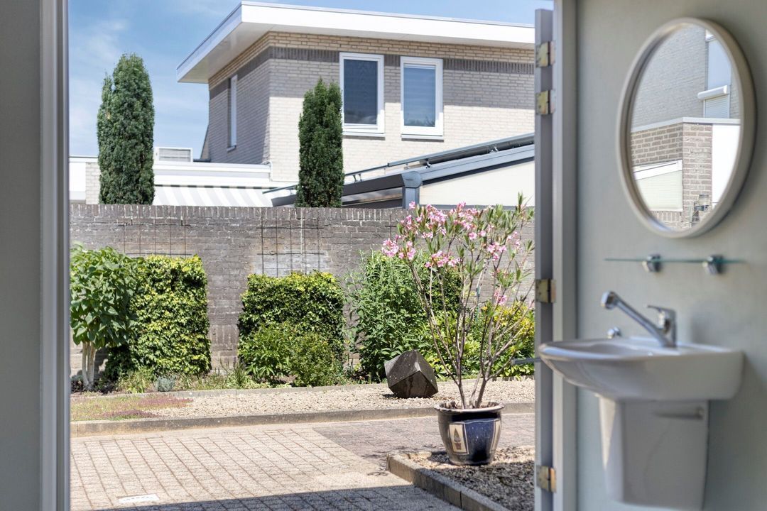 Via de openstaande deuren van de woonkamer, een deur in de keuken, de deuren in de slaapkamer en de garage, bereikt u de tuin. De sfeervolle, onderhoudsvriendelijke patiotuin is rondom omsloten en biedt volop privacy. Met meerdere terrassen, een mooie beplanting en een overdekt zitgedeelte aan de woonkamerzijde is het hier heerlijk toeven – of u nu wilt ontspannen in de zon of gezellig wilt tafelen in de schaduw.