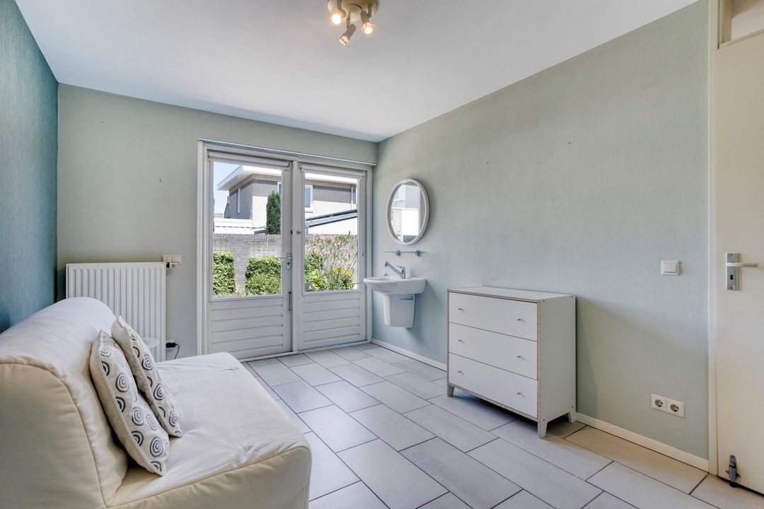 Vanuit slaapkamer 1 bereikt u slaapkamer 3 (ca. 12 m²), die beschikt over een eigen wastafel en directe toegang tot de tuin. Deze ruimte geeft op zijn beurt toegang tot de royale vierde slaapkamer (ca. 23 m²), perfect als extra slaapvertrek, werkkamer of hobbyruimte.