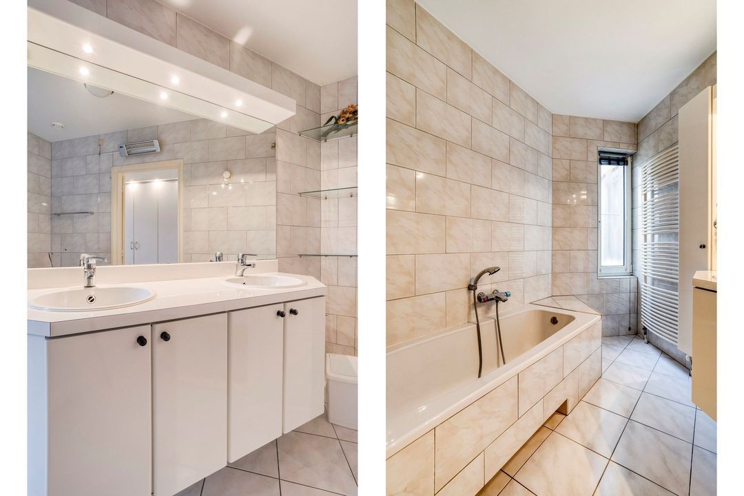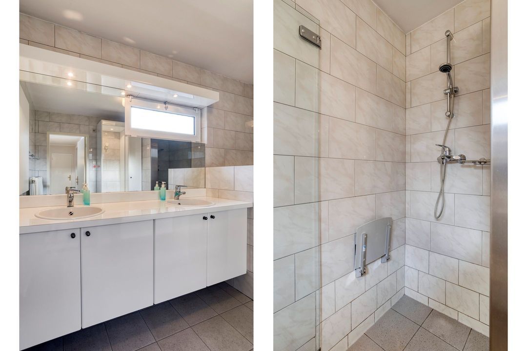 • Badkamer: De ruime, betegelde badkamer is ca. 8 m² groot en uitgerust met een inloopdouche met infrarood paneel, een wastafelmeubel met dubbele wasbak en een hangcloset.