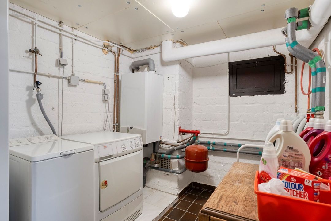 • Kelderruimte: De betegelde kelderruimte is circa 12 m² groot en voorzien van de witgoedaansluitingen. Tevens bevindt zich hier de cv-installatie (Eigendom, 2008). Deze ruimte leent zich uitstekend voor het opbergen van voorraden, gereedschap en overige materialen.