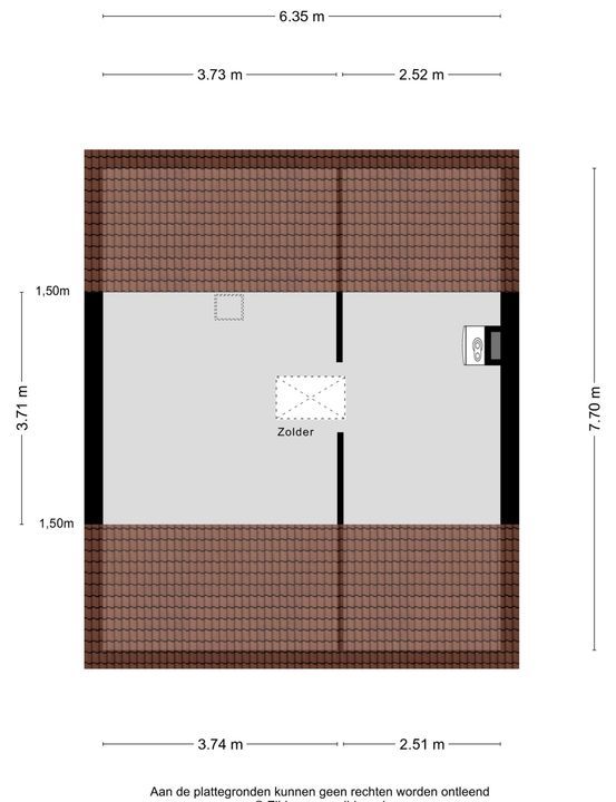 Middels de vlizotrap op de overloop bereikt u de royale zolderverdieping met een vloeroppervlakte van ca. 49 m². Hier bevindt zich de cv-ketel (Intergas, 2012, Huur). De zolder wordt momenteel gebruikt als bergruimte, maar biedt uitstekende mogelijkheden om, met de aanleg van een vaste trap en eventueel een dakkapel, een extra slaapkamer of werkruimte te realiseren.