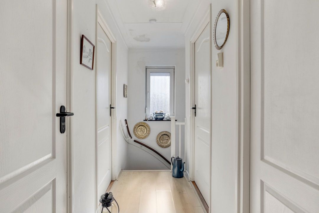 Via de trap in de entree bereikt u de overloop op de eerste verdieping. Deze biedt toegang tot drie slaapkamers, de badkamer en een berging. Daarnaast is hier een vlizotrap aanwezig die leidt naar de ruime zolderverdieping.
