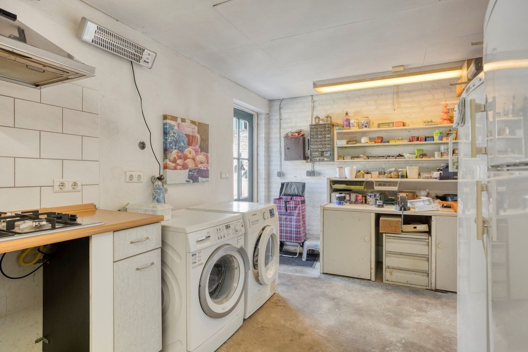 De woning beschikt daarnaast over een ruime bijkeuken van ca. 13 m², gesitueerd in de voormalige garage en bereikbaar vanuit de tuin. Deze ruimte is voorzien van de witgoedaansluitingen en een keukenblok met 4-pits gasfornuis en afzuigkap. Daarnaast is er voldoende plaats voor het opstellen van een extra koelkast of vriezer, waardoor deze ruimte een waardevolle aanvulling vormt op het wooncomfort.