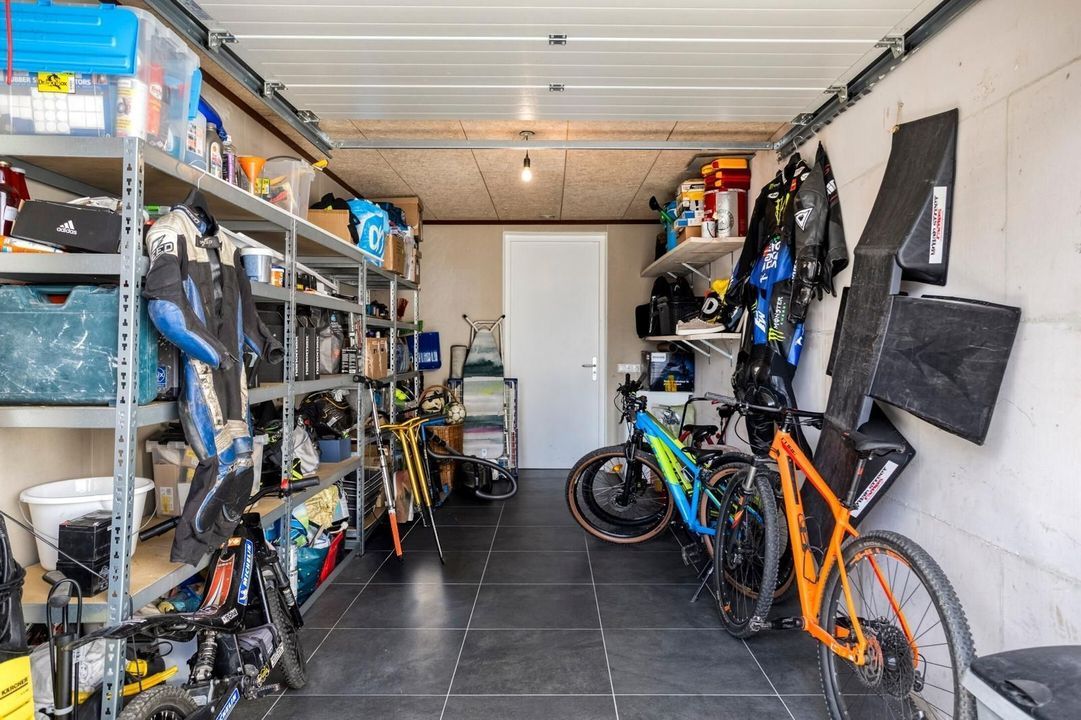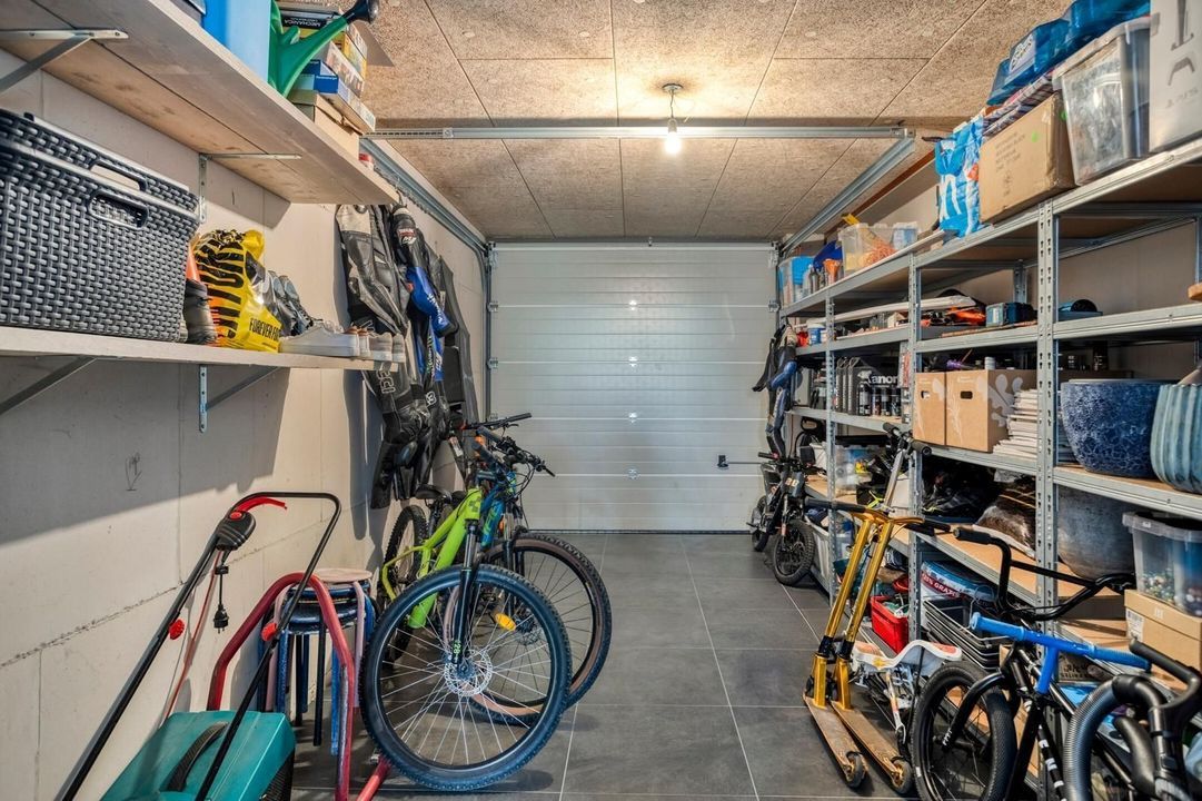 De garage heeft een oppervlakte van circa 17 m² en is voorzien van een handmatig bedienbare poort. Deze praktische ruimte biedt volop mogelijkheden: ideaal voor het stallen van een auto, fietsen en het opbergen van tuingereedschap en overige spullen. Prettig is het parkeren op eigen terrein op de oprit.